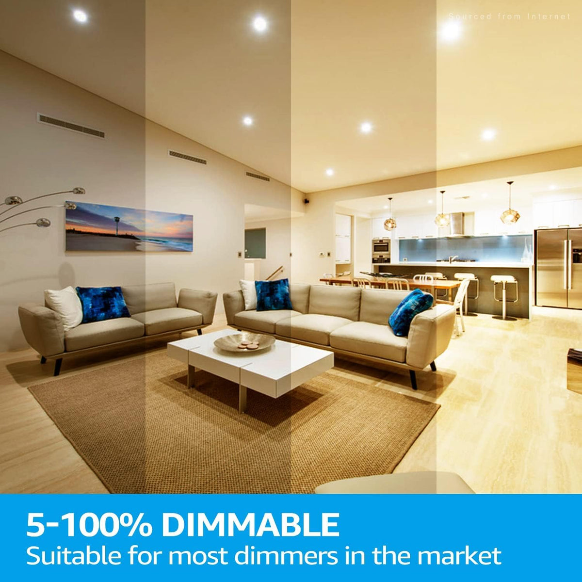 If you are troubled by small ceiling spaces or high energy costs then this warm white ultra-thin downlight is the one for you. Slim Design If you have ceilings too small for normal LED flush light panels then this light is your solution. Only needing 2 inches of clearance and no housing needed, this ultra-thin downlight supports retrofit, remodel, and new construction installations. Strict Safety Standards The light's rugged aluminum housing grants excellent corrosion resistance and heat dissipation. The IC rating lets it be in direct contact with insulation. This ETL listed light is high-quality, safe to use, and is energy efficient. Many Uses The light's metal spring clamps firmly hold it to your ceiling for an easy and safe install. Use it to light attics, apartments, kitchens, bedrooms, and so much more. Warranty This product comes with a 3-year warranty for your rights and benefits as a customer, satisfaction guaranteed. Specifications: Wattage: 9W Voltage: 110-130V Equivalent: 80W Luminous flux: 800lm CRI>90 Lifespan: 50,000hrs Beam angle: 110 CCT: 3000K warm white Dimmable: Yes Dimming range: 5%-100% Working temp: -4?-113? Waterproof rating: Damp location Material: Die-casted aluminum