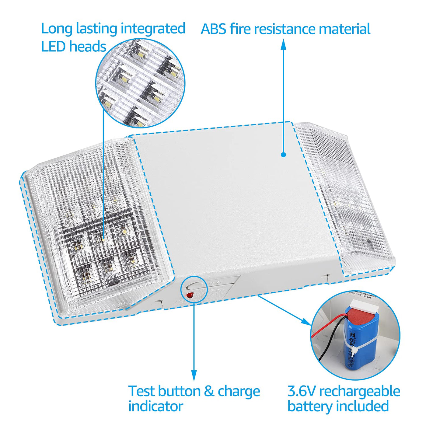 Designed with 12pcs LEDs and one bead lens per head, the LED emergency light with 6000K pure white light provides sufficient brightness to the darkness. This LED emergency light is much more compact than the traditional emergency light, occupying less space without affecting the existing furnishing style.