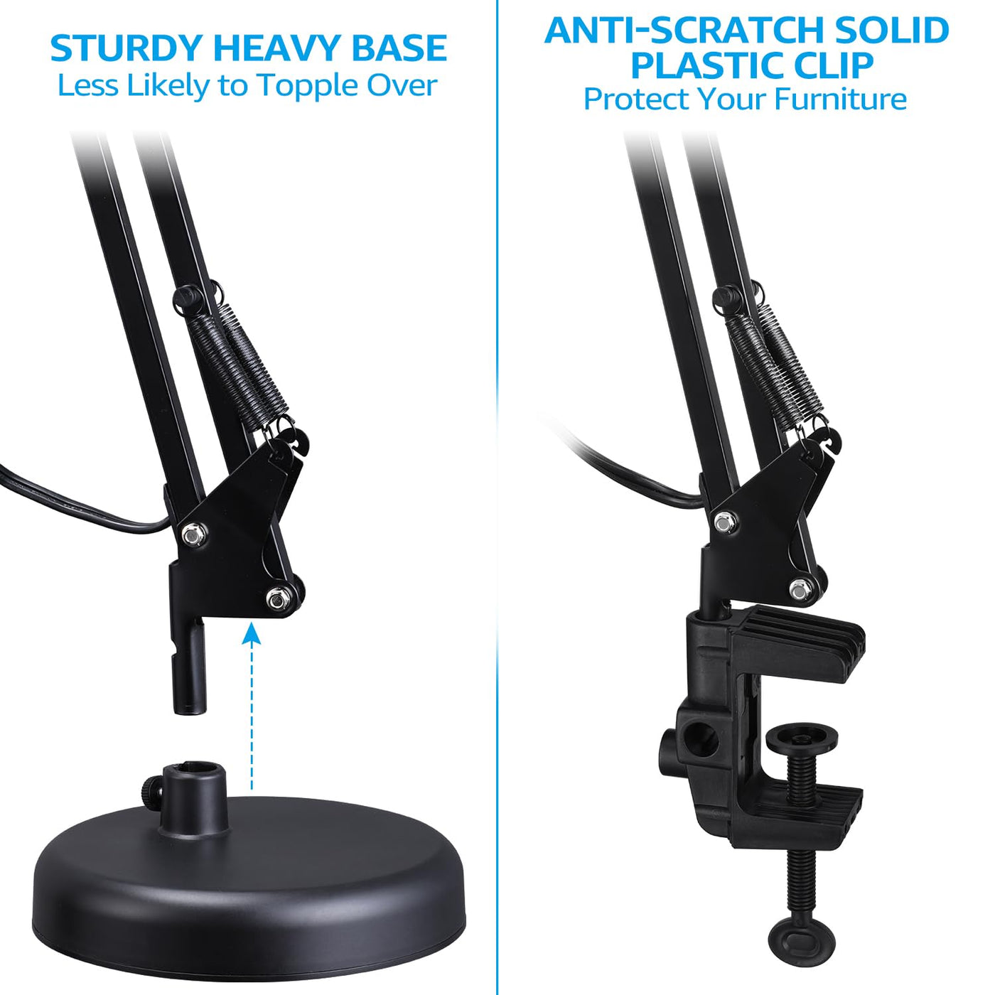 Torchstar Metal Desk Lamp With Clamp, Swing Arm , Architect Adjustable Gooseneck Table Lamp, Clip Desk Lights For Home Office, Work, Study, Reading, E26 Base, Multi-Joint, Black