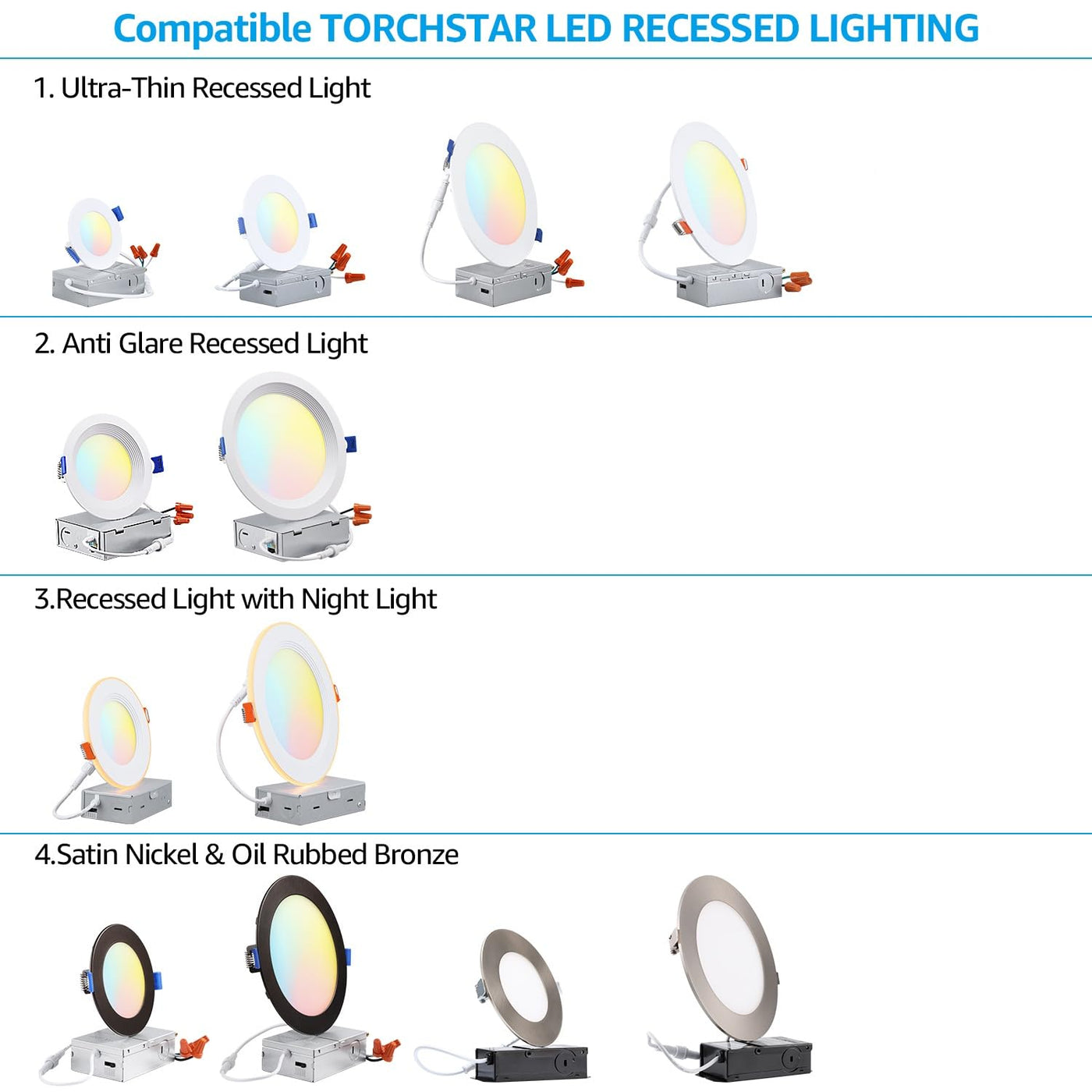 Q: What sizes of recessed lights are compatible with the TORCHSTAR Mounting Plate?A: The TORCHSTAR New Construction Mounting Plate is designed to work effortlessly with 3, 4, and 6 inch slim recessed lights, offering versatility for various installation needs.