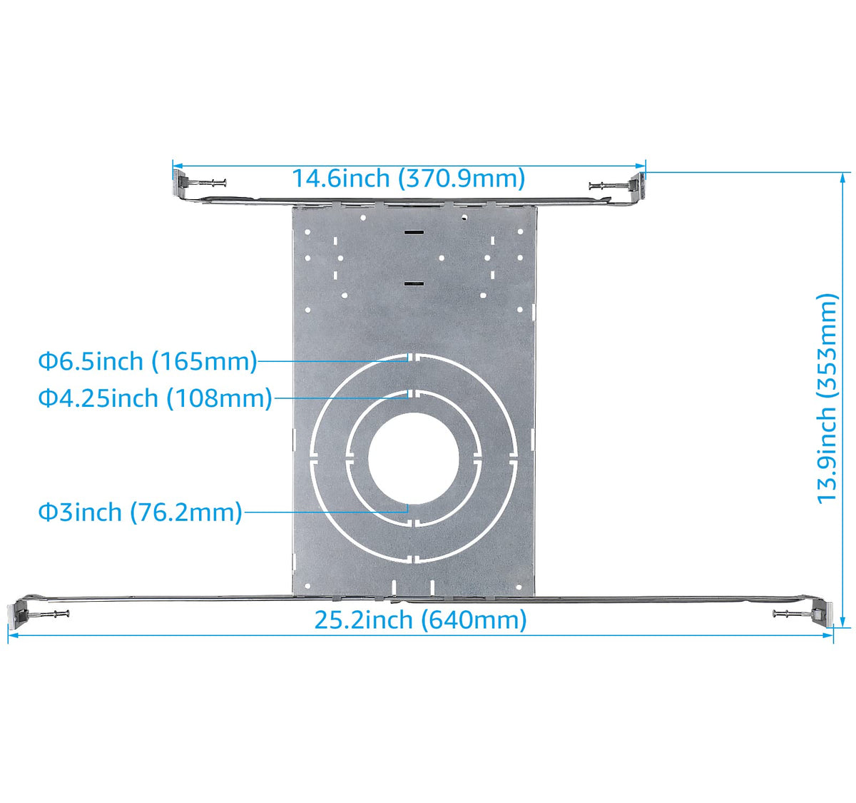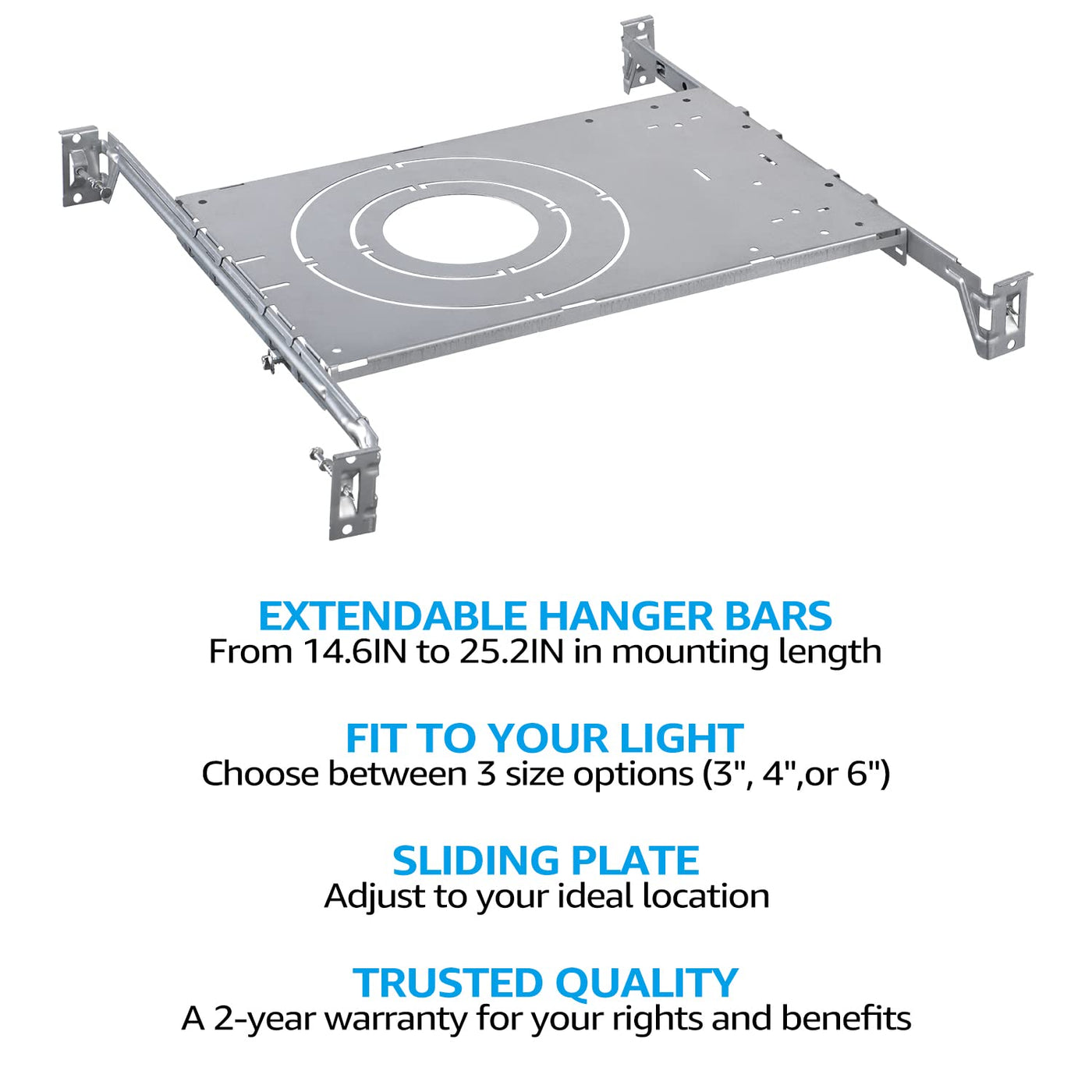 Torchstar'S New Construction Mounting Plate Fits 3Inch, 4Inch, And 6Inch Led Recessed Lights And Is Perfect For New Home Construction Or Home Remodels. Easy To Use The Hanger Bars Can Extend From 9.06 Inches To 25.20 Inches. The Included Duplex Head Nails Make Installing This Mounting Plate Easy. Excellent Design The Galvanized Plate Is Rust And Corrosion Resistant, Ensuring A Longer Lifespan. It Also Comes Backed By A 2-Year Warranty For Your Rights And Benefits. Specifications: Material: Galvanized Sheet Thickness: 0.03 Inches Adjusting Range: 9.06 Inches-25.20 Inches