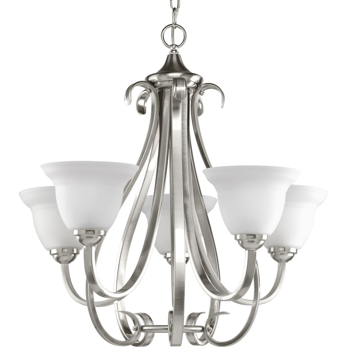 Product Descriptionelegantly Formed Five-Light Chandelier Featuring Soft Etched White, Bell-Shaped Glass. Distinctive Ebbing And Flowing Of Flat Steel Arms And Scroll Accents Are Plated In A Brushed Nickel Finish. With A Timeless Appeal, This Torino Fixture Is Supplied With Six Feet Of 9 Gauge Chain For Ceiling Chain Mount.From The Manufacturercasual And Rustic With A Certain Modern Flair, The Torino Collection Features An Elegantly Scrolled Frame In A Brushed Metal Finish With Etched Glass Shades. The Styling Is A Versatile And Timeless Complement To Any Room And The Complete Collection Includes Fixtures For Every Room In The Home. 5-Light Chandelier With Etched White Oversized, Bell-Shaped Glass Bowls. Distinctive Ebbing And Flowing Of Squared Scrolls And Arms In Brushed Nickel Finish. Uses (5) 100-Watt Medium Base Bulbs 26-1/8-Inch Diameter By 24-3/4-Inch Height
