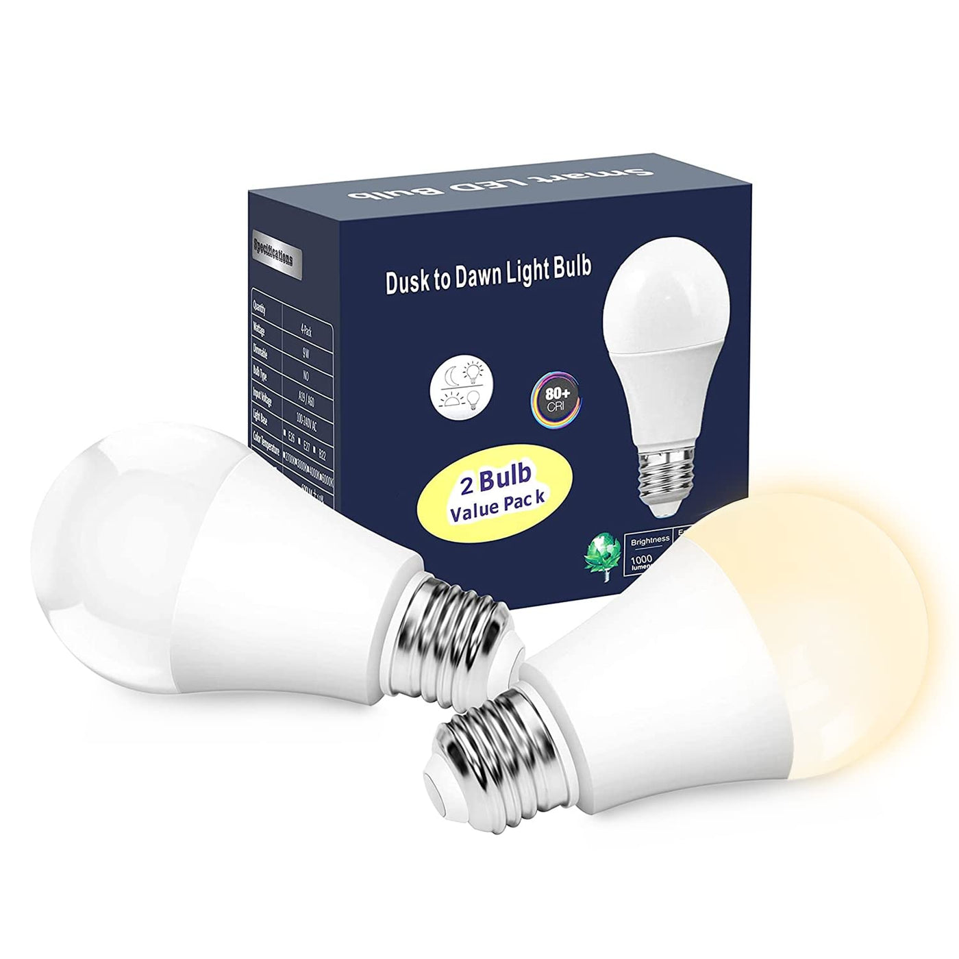 Torkase Outdoor Dusk To Dawn Light Bulbs, No Timer Required, 12W(100W Equivalent), 3000K Warm White, E26 A19 Automatic Sensor Led Bulb, Built-In Photocell Detector For Boundary Garage Patio, 2 Pack