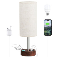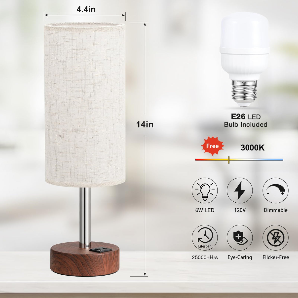 Touch Bedside Table Lamp With Usb - 3 Way Dimmable Redwood Lamps For Bedroom Nightstand, Desk Lamp With Charging Station For Dor