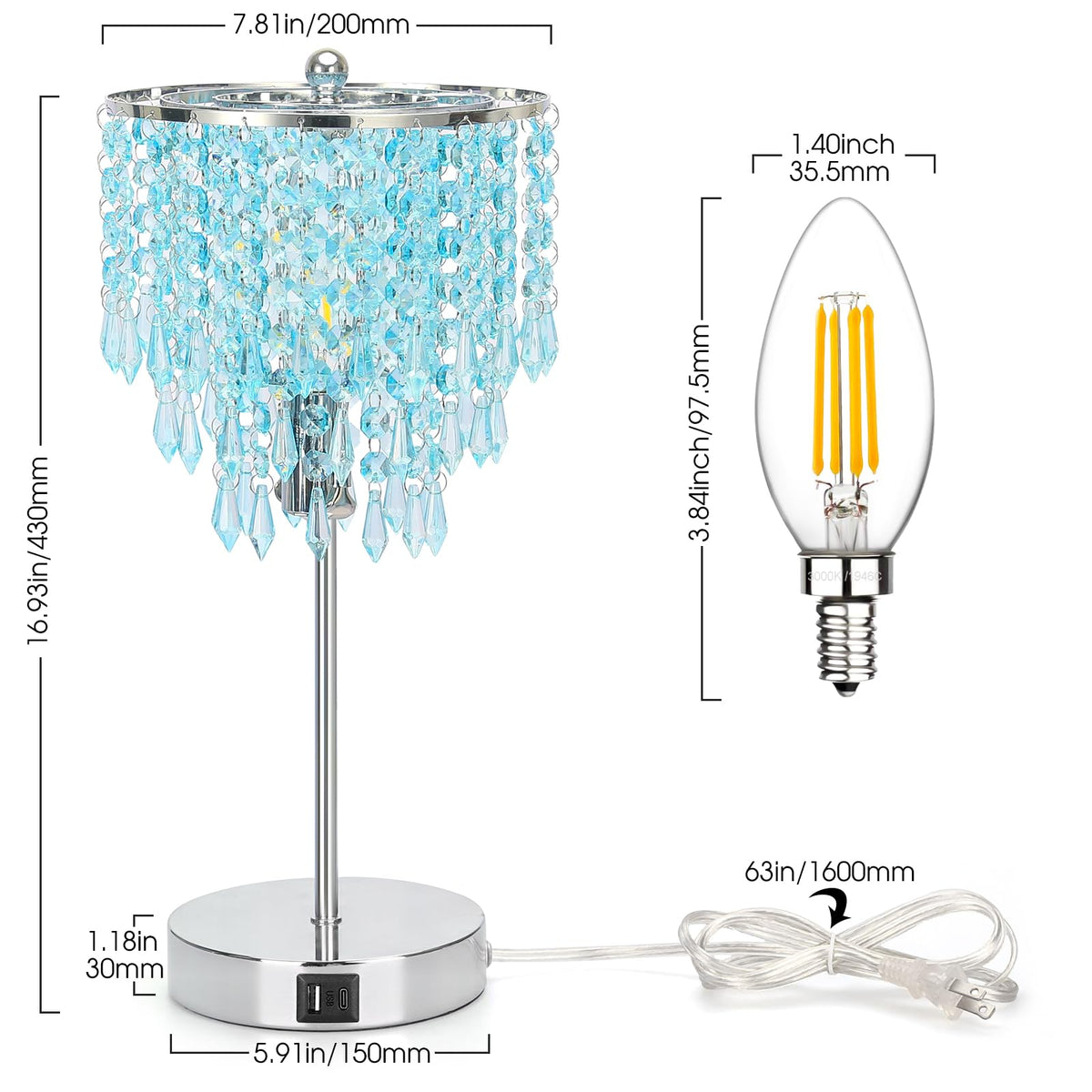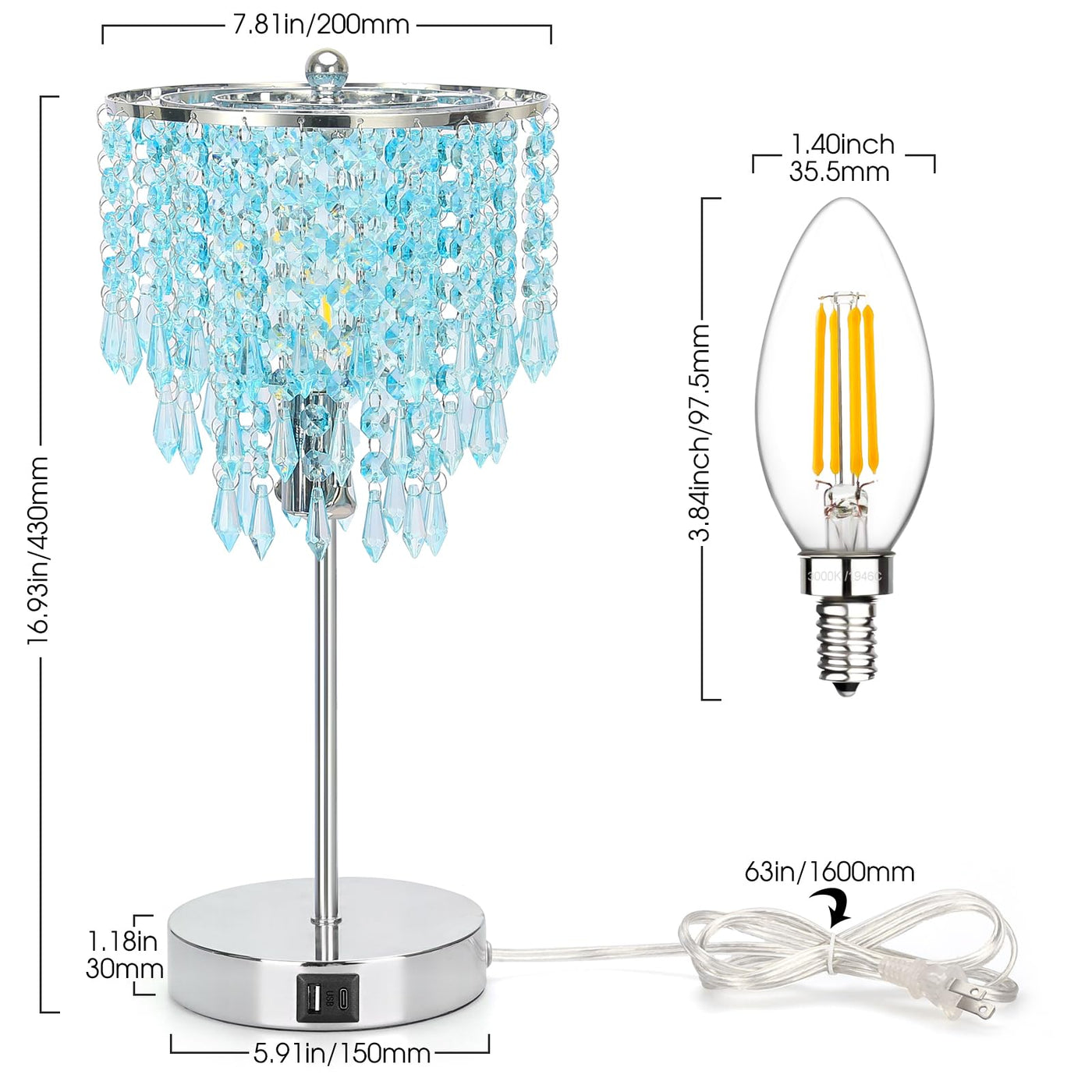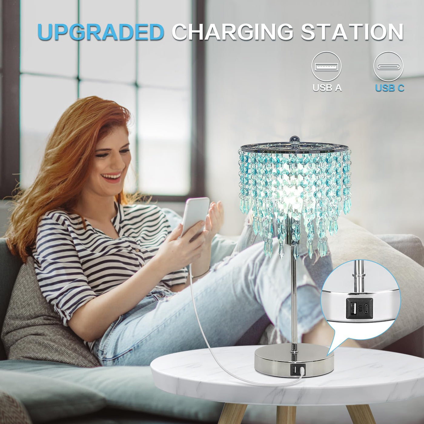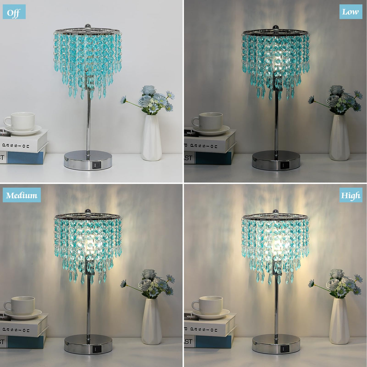 Touch Control Crystal Table Lamp, Usb Bedside Lamp For Bedroom, 3-Way Dimmable Nightstand Lamp With Elegant Teal Shade, Modern D