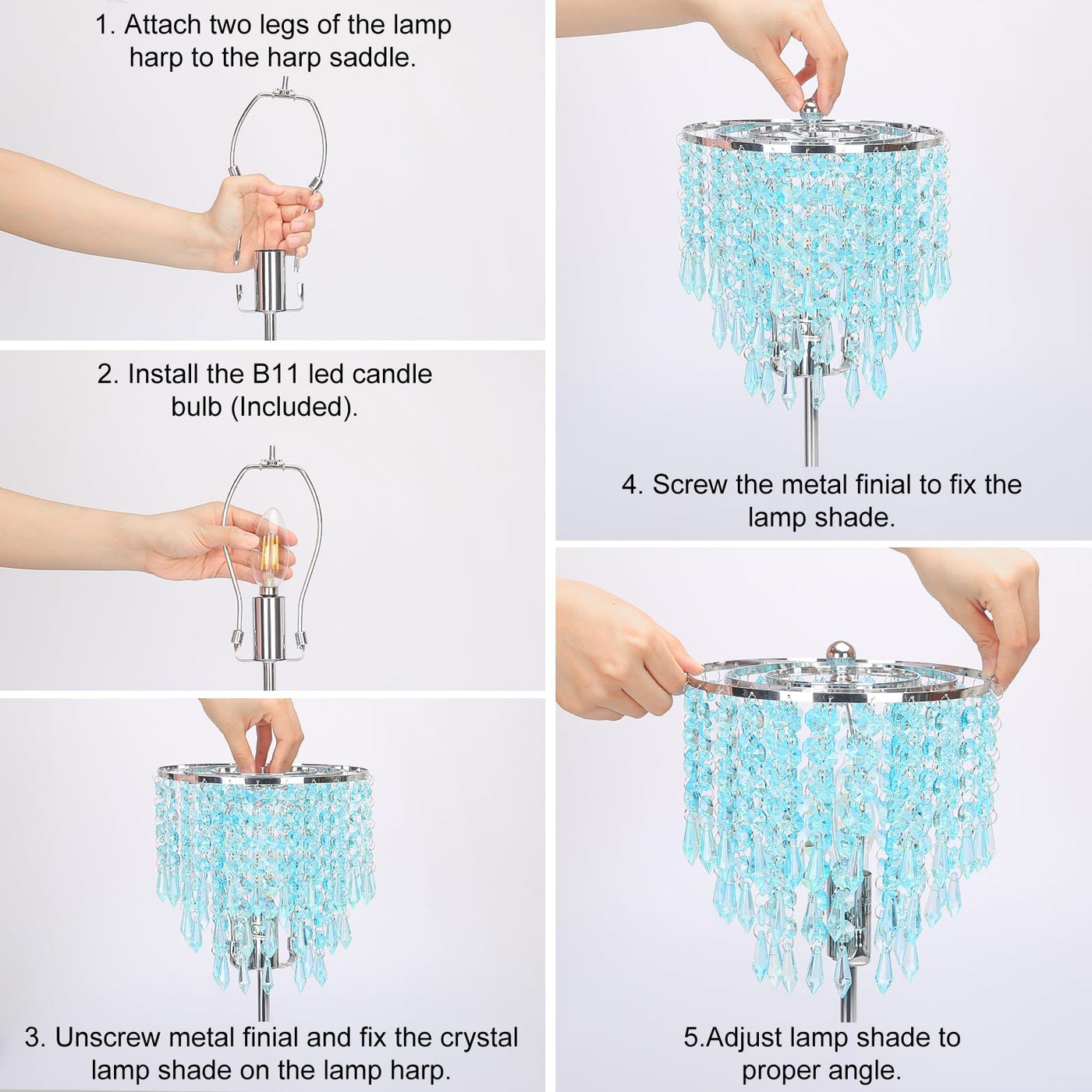 Q: Is the lamp easy to assemble?A: Absolutely! The lamp is designed for easy installation. The crystal strands are already attached to the lampshade, allowing for quick and tool-free assembly in about 2 minutes.