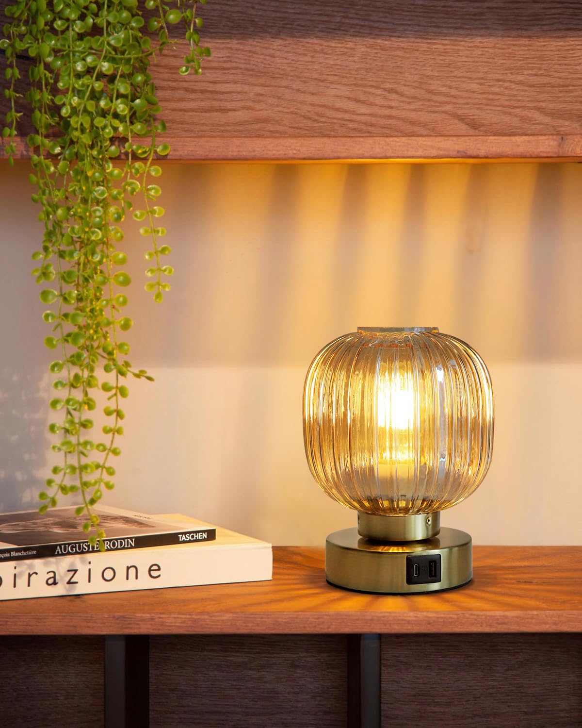 Touch Control Small Table Lamp Set Of 2, Elegant Gold Glass Bedside Lamp 3 Way Dimmable With Usb C+A Charging Ports - Bedroom Ni
