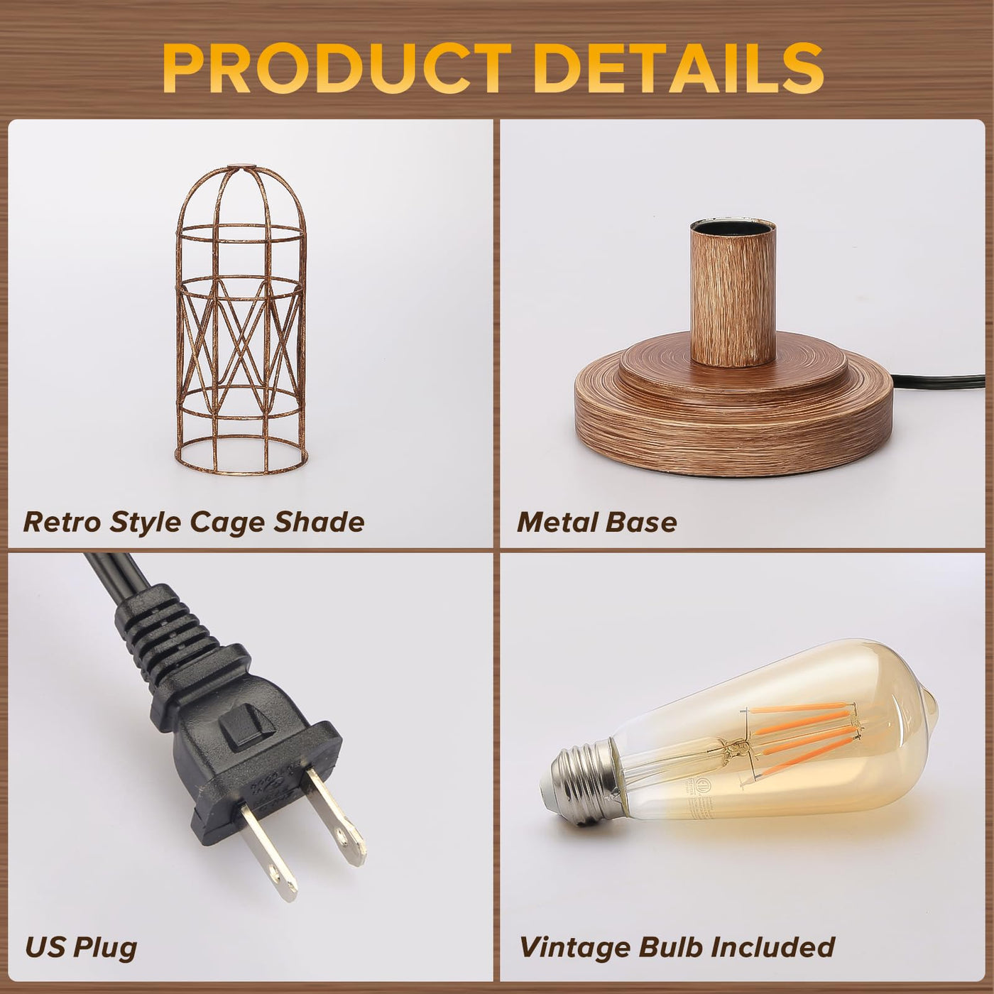This Small Table Lamp Features An Rustic Cage Shade, It Will Add A Touch Of Farmhouse Character Wherever It Is Placed. 3 Way Dimmable Touch Function Enables You To Choose The Desired Brightness According To Your Need.
