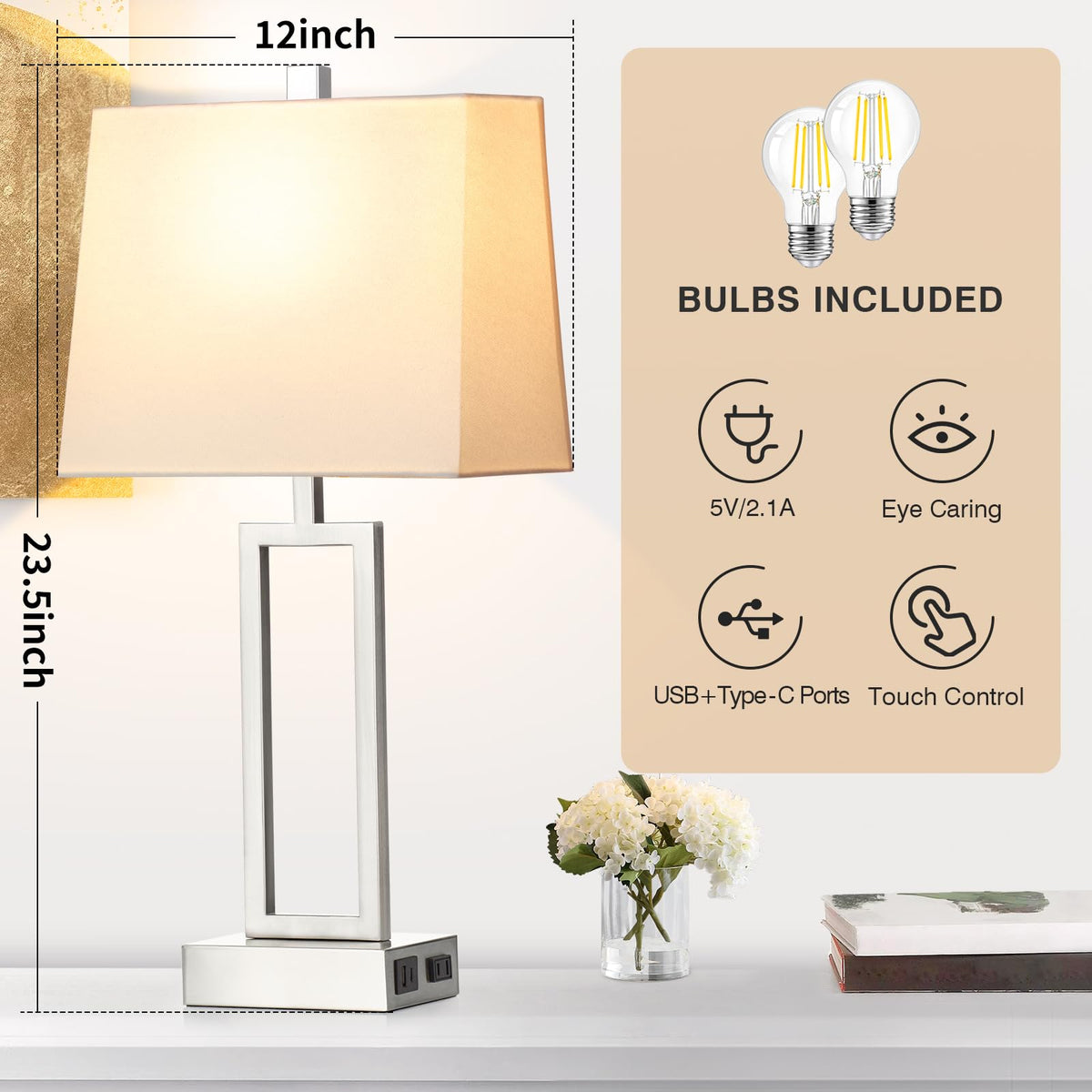 Touch Control Table Lamps For Living Room, 3-Way Dimmable Modern Table Lamp With Usb A+C Charging Ports & Ac Outlets, Bedside Co