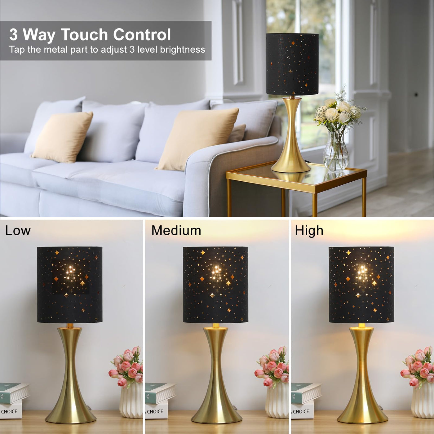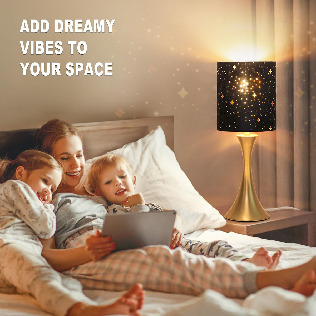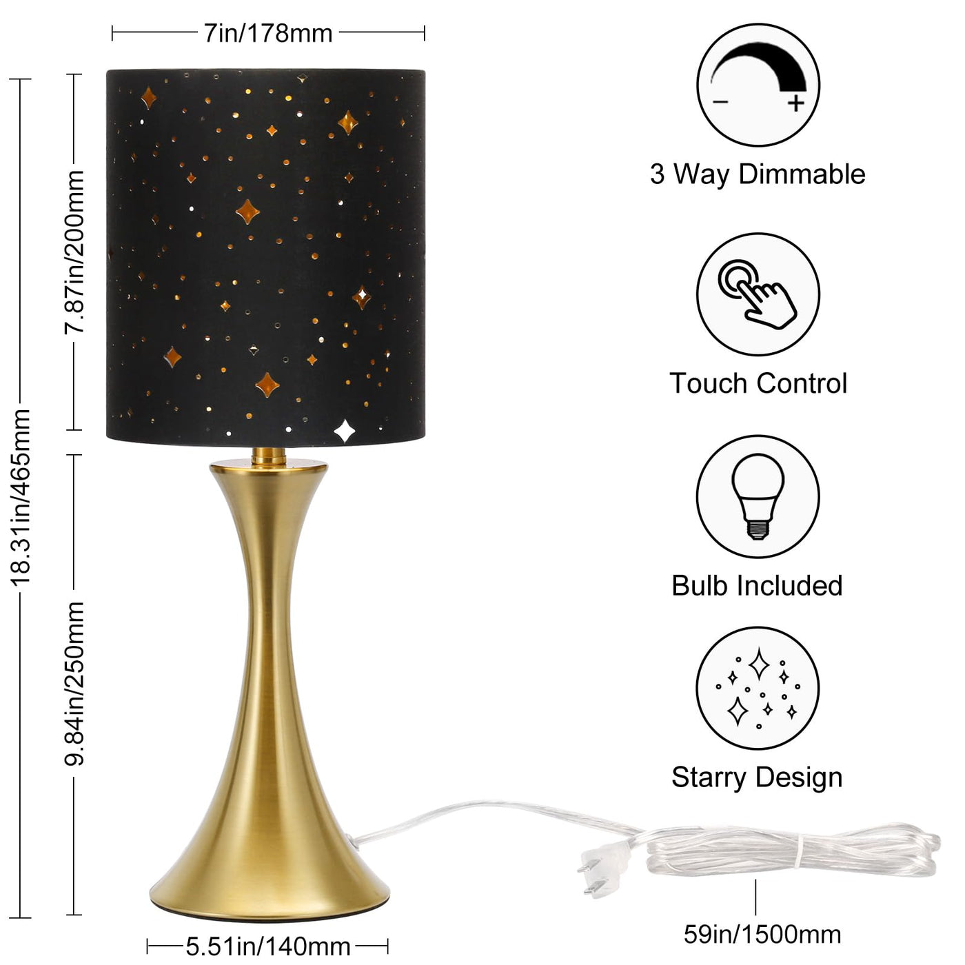 Touch Lamp For Bedroom, 3 Way Dimmable Gold Table Lamp With Black Starry Shade, Decorative Nightstand Lamp Ambient Beside Light
