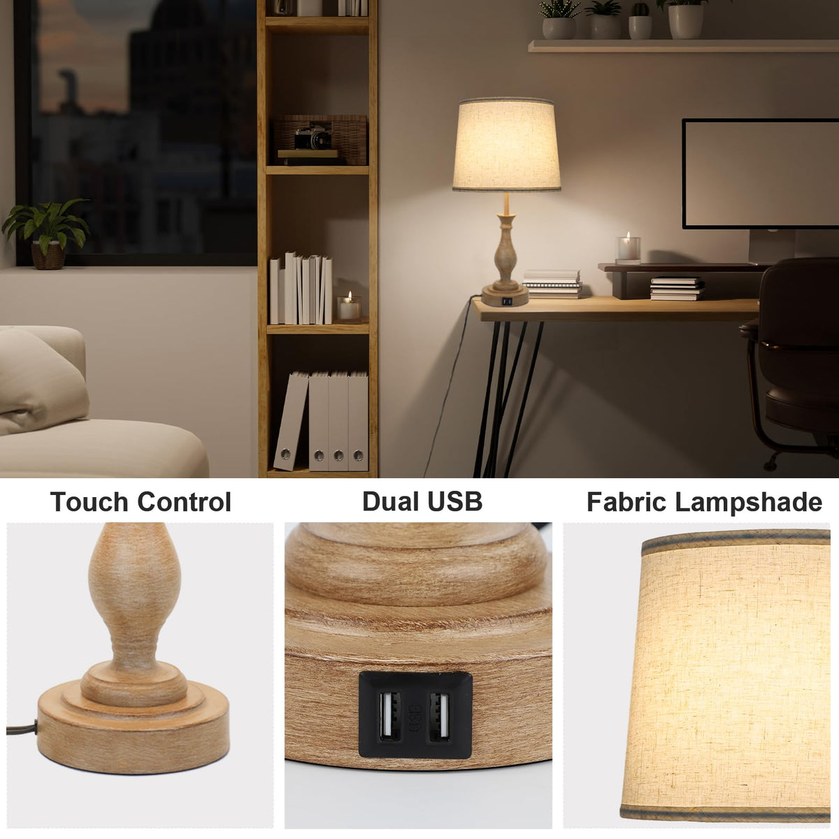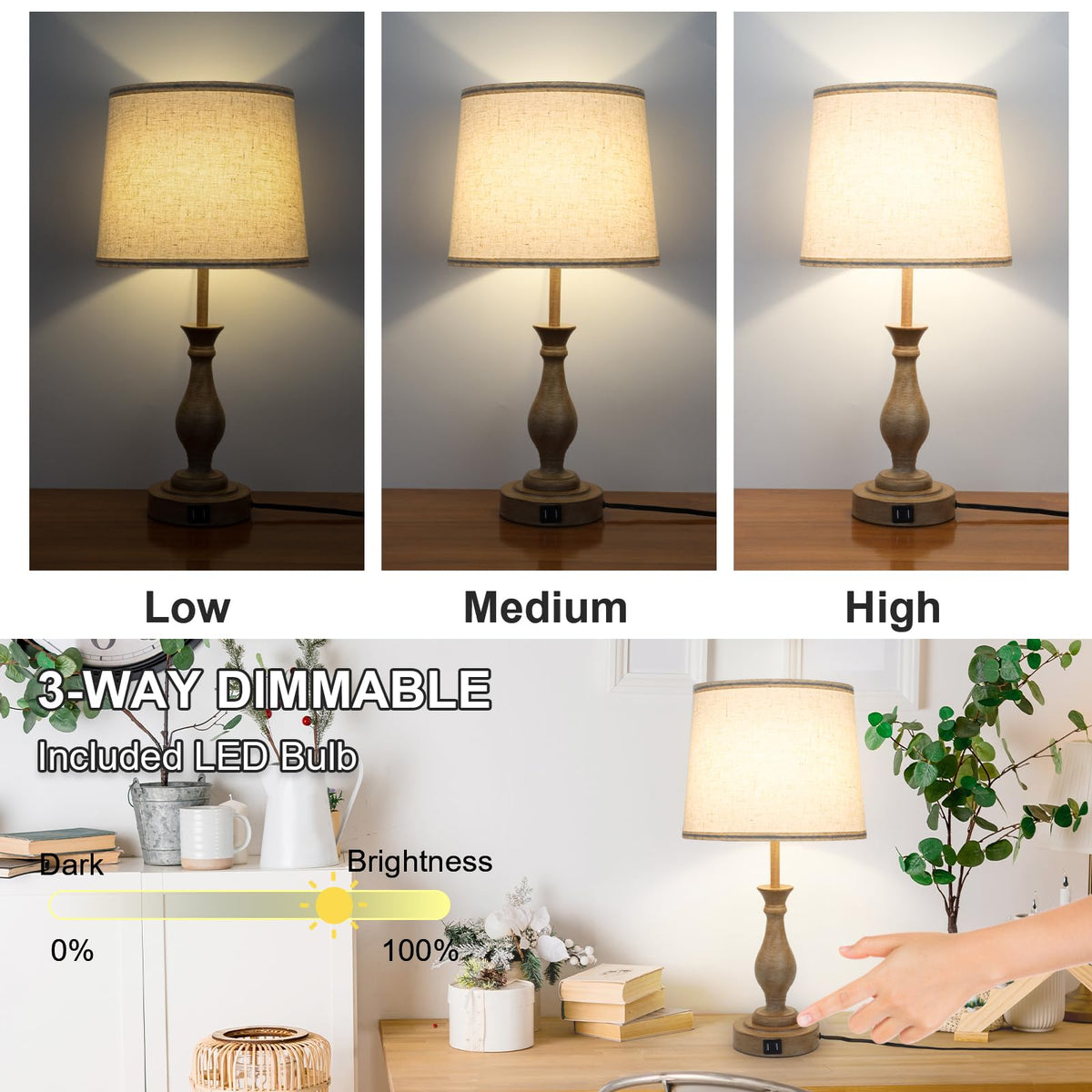 Touch Lamps For Bedrooms Set Of 2, Farmhouse Table Lamp With Dual Usb Charging Ports, 3 Way Dimmable Nightstand Lamps With Linen