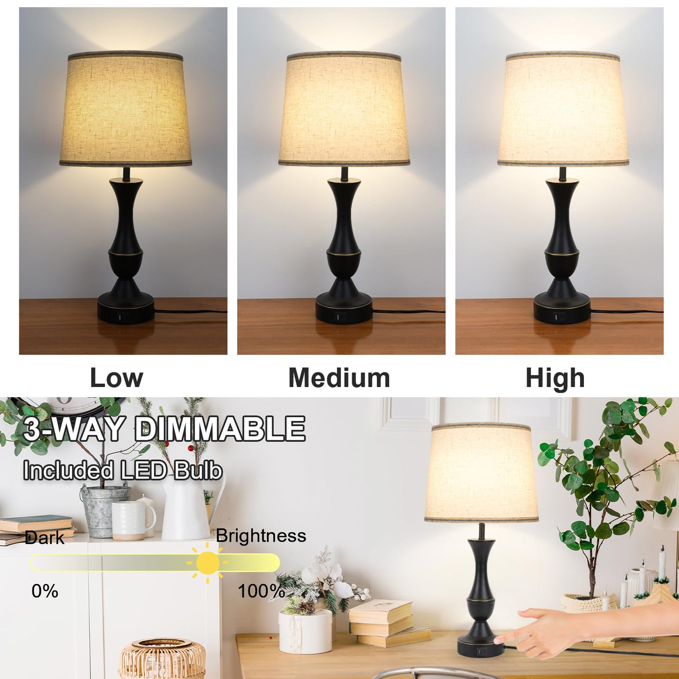 Q: Can I adjust the brightness of the Touch Lamps?A: Yes, these lamps feature a 3-way touch dimmable function that allows you to easily adjust the brightness to low, medium, or high settings with a simple touch on the lamp base.