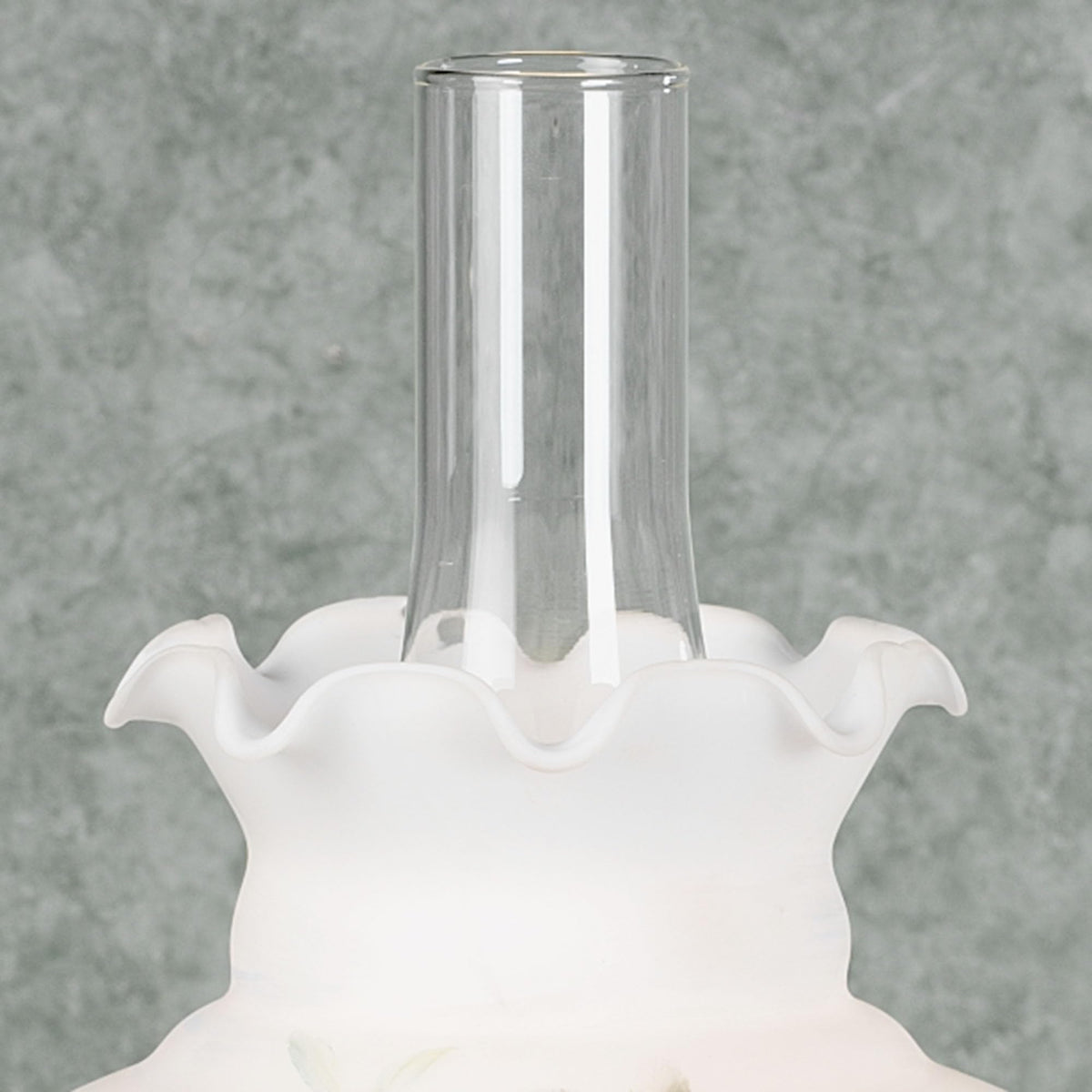 The exquisite Beatrice Hurricane Table Lamp has handpainted rose bouquets in light pink and dark rose, along with other flowers, on glass. Metal sections are hand-finished in antique brass. Top is scalloped; chimney is clear glass. UL listed. Requires one 60W max. bulb and one nightlight bulb. 10''dia.x24''H. Complete your Victorian style decor with the old-fashioned look of the Beatrice Hurricane Table Lamp. The glass top shade and bottom globe feature handpainted, classic rose bouquets in light pink and dark rose, along with lavender, pale yellow, and ivory florals. Hurricane lamp has a metal base, feet, and a design around the bottom of the top shade, all hand-finished in antique brass. This warm and inviting hurricane table lamp has a scalloped top edge. A three-way switch on socket operates bottom, top, or both. The Beatrice Hurricane Table Lamp is metal and glass with faux crystal beads. Dust with a soft, dry cloth. Do not use polishes, chemicals, or abrasives. ? This item is our exclusive! ? Handcrafted hurricane lamp with floral charm ? Faux crystal beads accent the middle ? Key switch operates bottom, top, or both