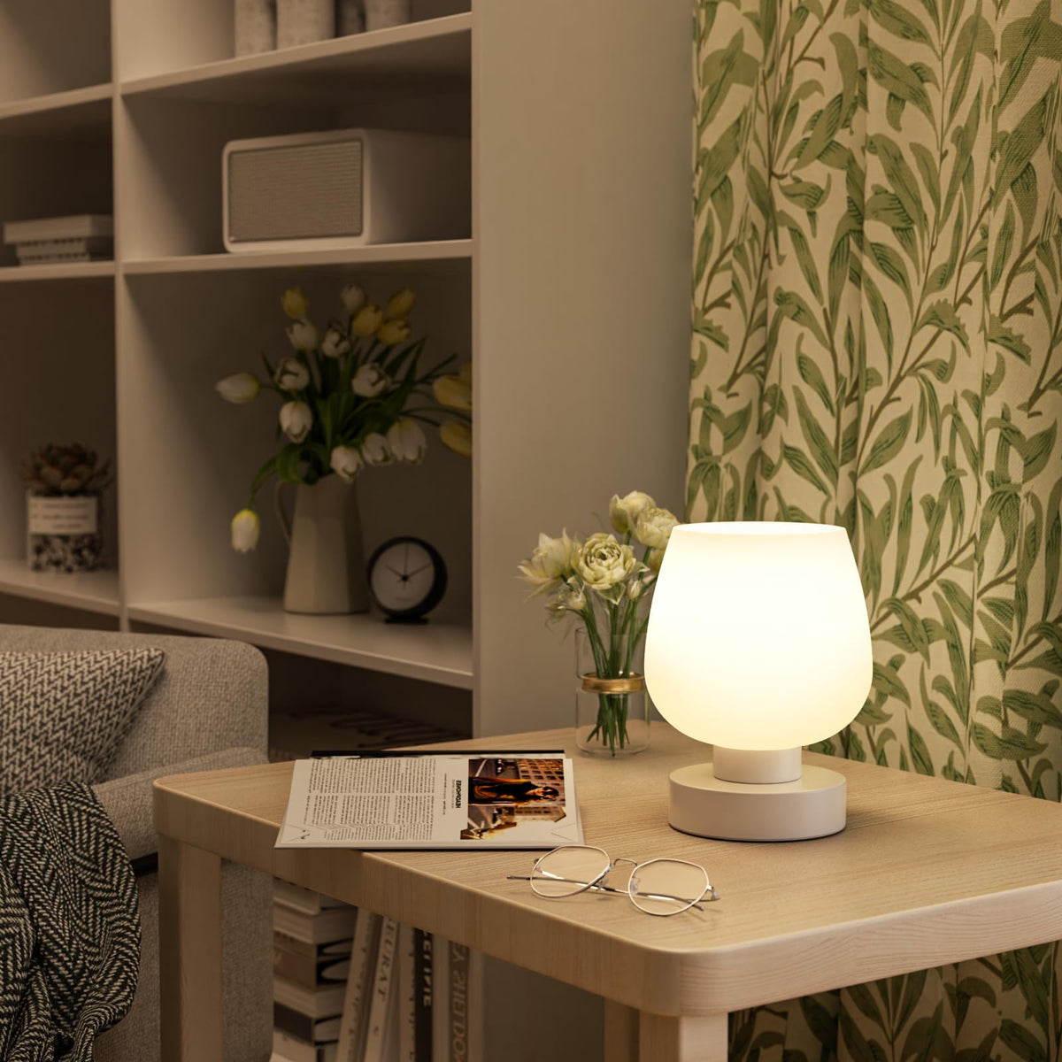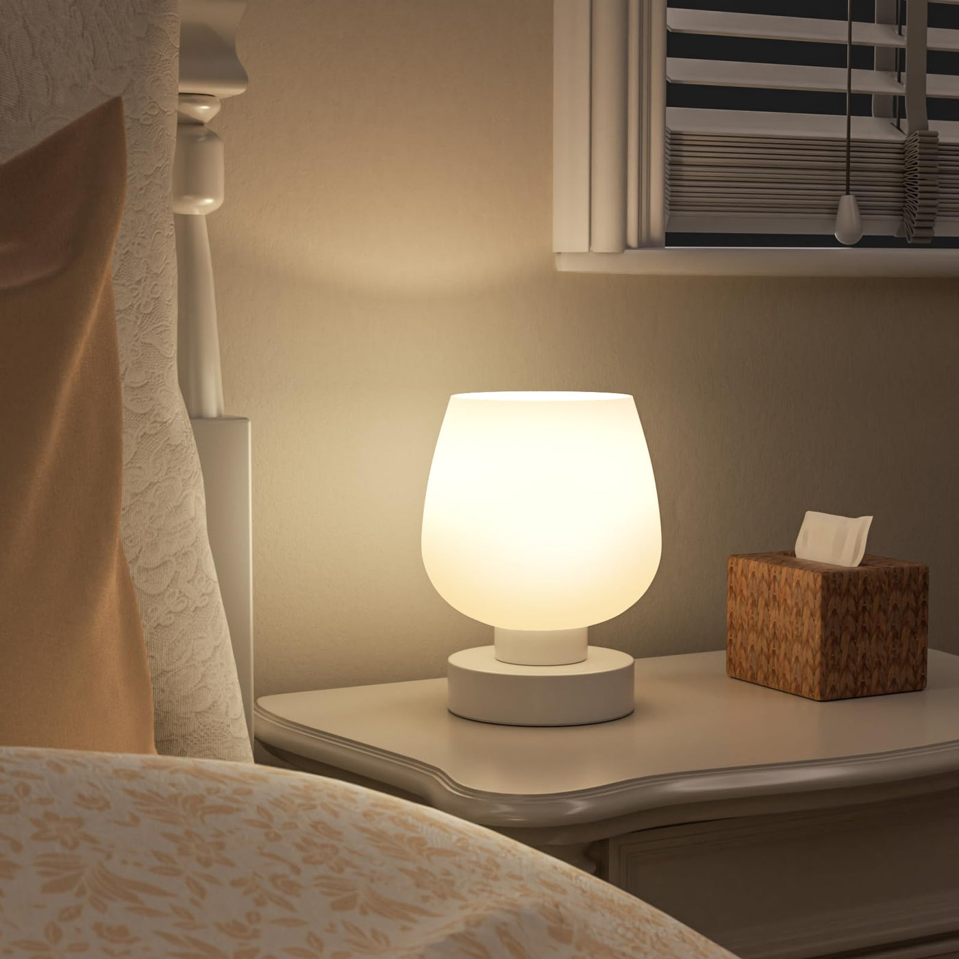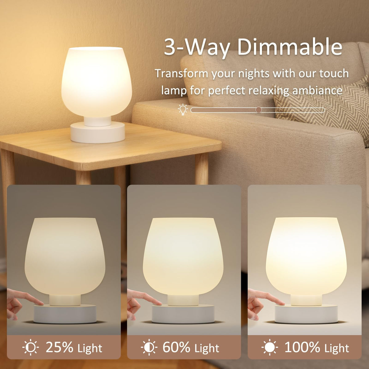 Touch Table Lamp For Nightstand - Small Bedside Lamp For Bedroom Living Room Night Stands, Desk Lamp With White Glass Shade For