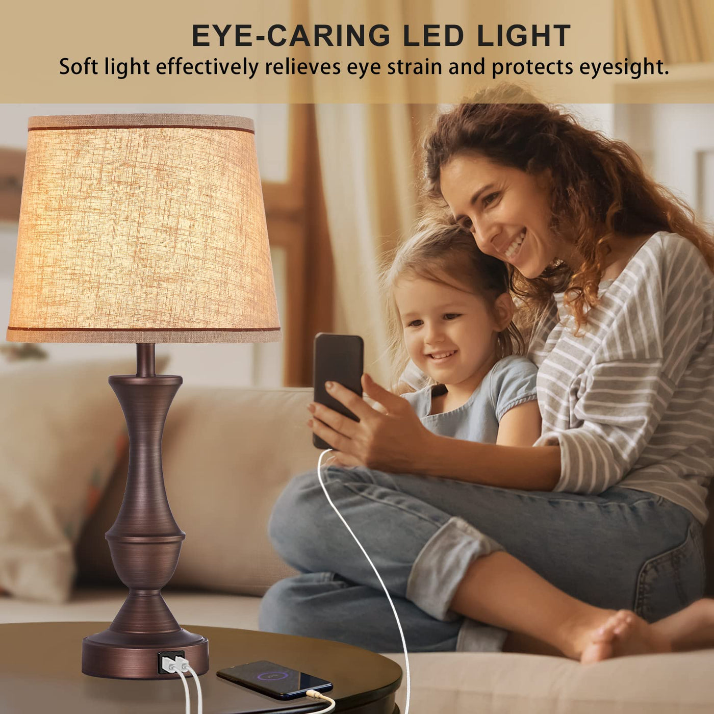 Touch Table Lamps For Bedrooms Set Of 2, 22 '' Bedside Lamps With Usb Charging Ports, 3-Way Dimmable Nightstand Lamp With Premium Linen Fabric Lampshade For Bedroom, Living Room, Bulbs Included