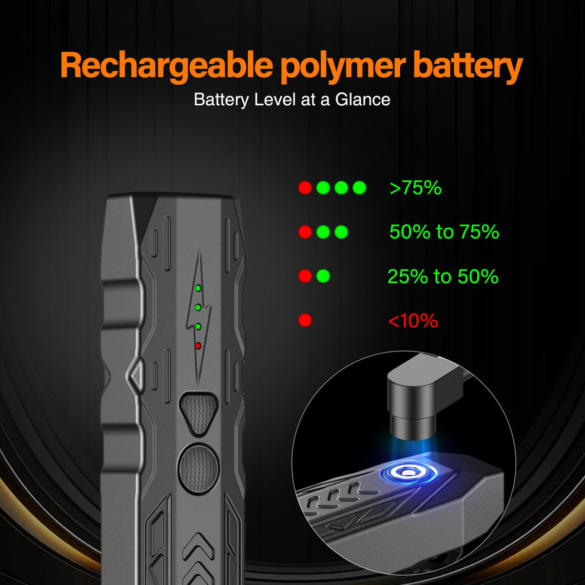 Powered by a built-in rechargeable battery, simply press to get your light mode or brightness level