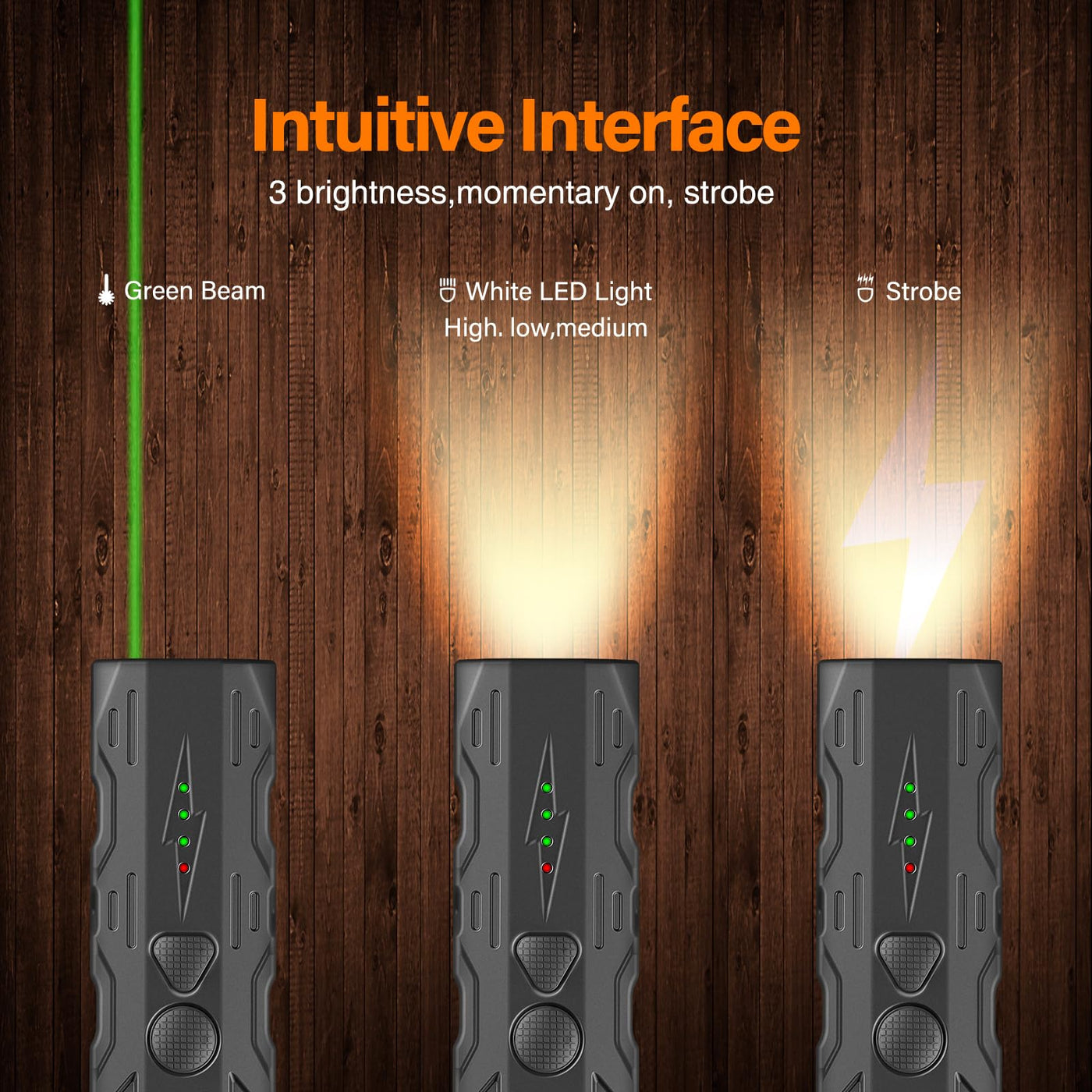 TOUGHSOUL EDC Flashlight and Green Laser Combo, 1000 Lumen Slim White LED Portable Flashlight with Built-in Rechargeable Battery