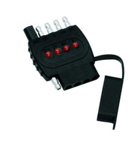 Q: How do I use the Tow Ready 20115 5-Flat Car End Tester?A: To use the Tow Ready 20115 5-Flat Car End Tester, simply plug it into any standard car connector. The LED display will immediately indicate the status of your running light circuits, including the left and right turn signals.