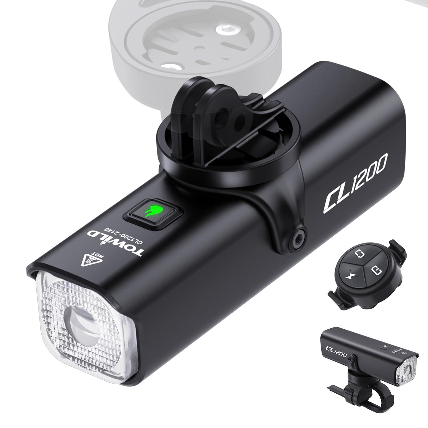 Towild Bike Lights 1200 Lumen,Wireless Control,Quick-Release Mountain Bike Light Rechargeable,5 Night & Day Modes,6.2Oz/176G,Ipx6 Waterproof,Bicycle Headlight For Road,Commuter Bikes, Black