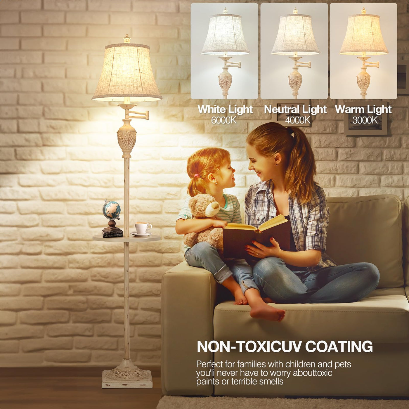 Traditional Led Floor Lamp With 350? Adjustable Swing Arm Lamp - Vintage Pole Lamp Swing Arm For Living Room, Bedroom And Office