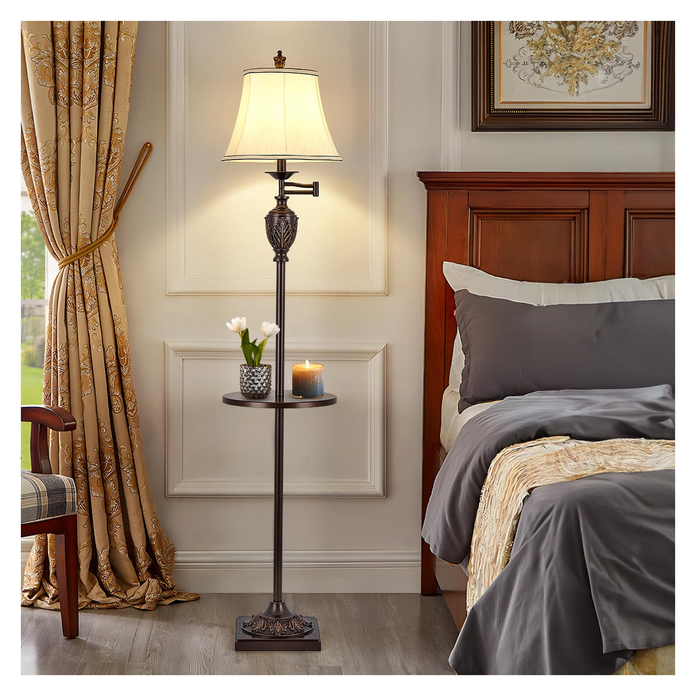 Traditional Led Floor Lamp With 350? Adjustable Swing Arm Lamp - Vintage Standing Pole Lamp For Living Room, Bedroom And Office
