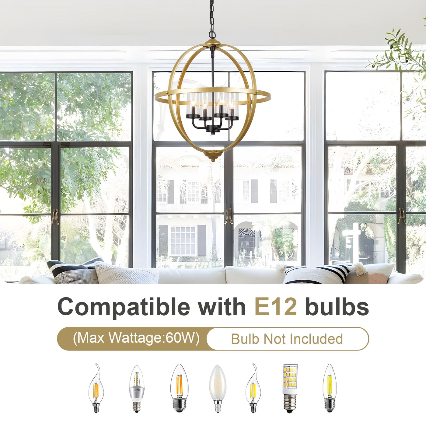 - **4*E12 Socket**: Designed to hold four E12 candelabra lamp bases, this chandelier supports a maximum of four 60W bulbs (bulbs not included). Operating on a 120V AC system, it is compatible with a variety of bulb types including LED, incandescent, and CFL.