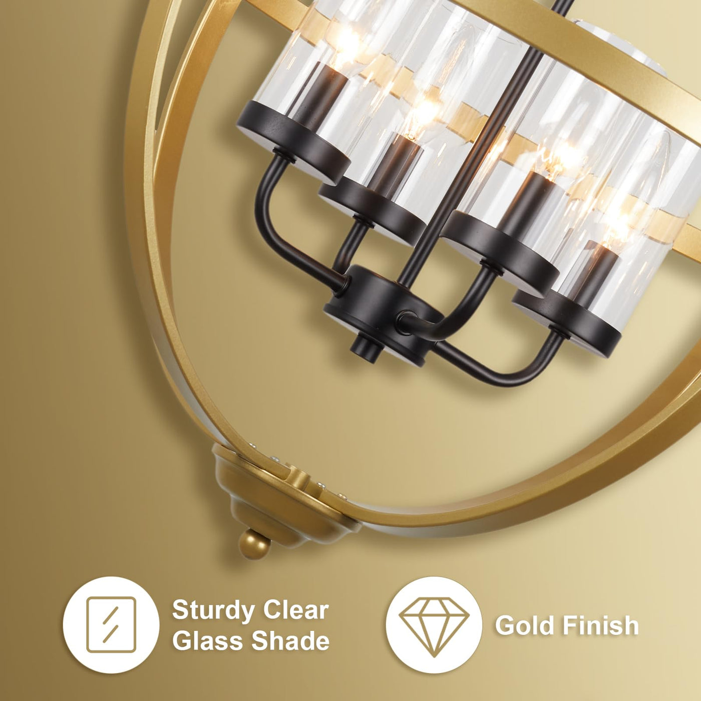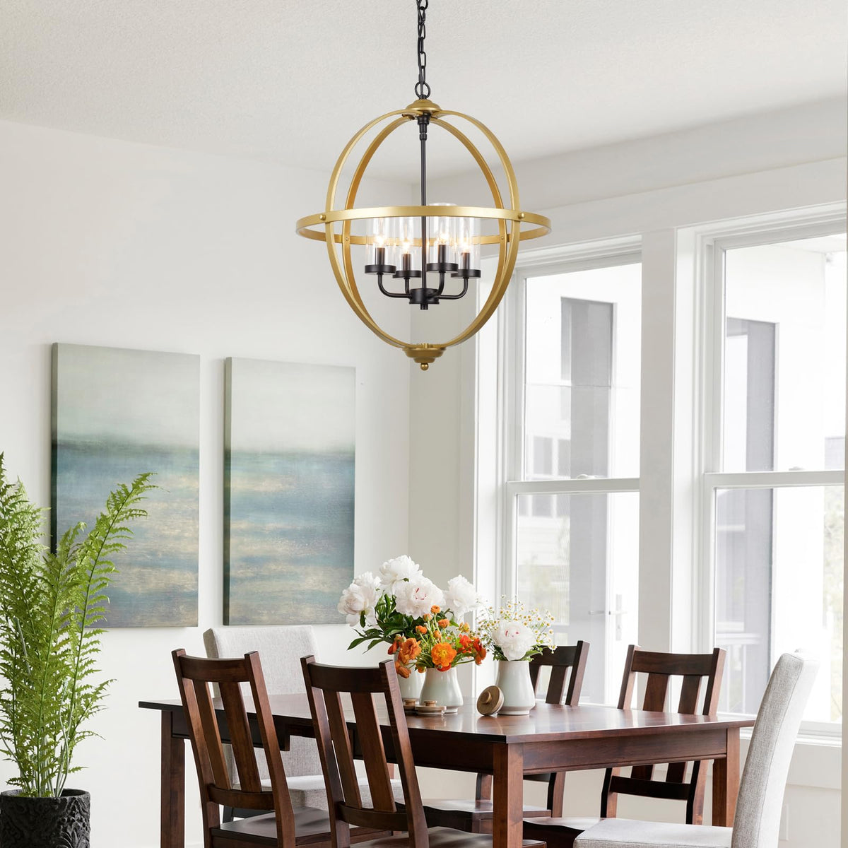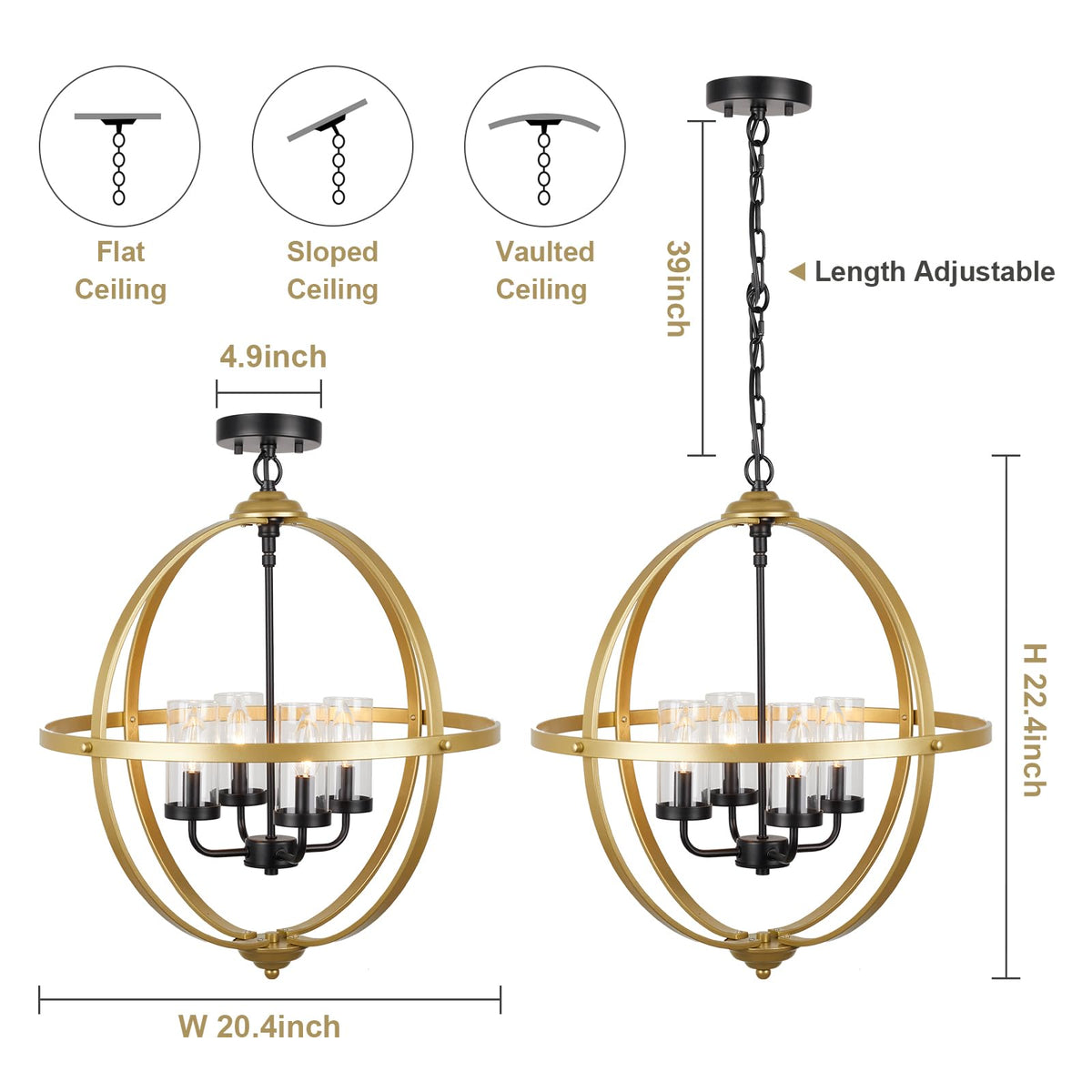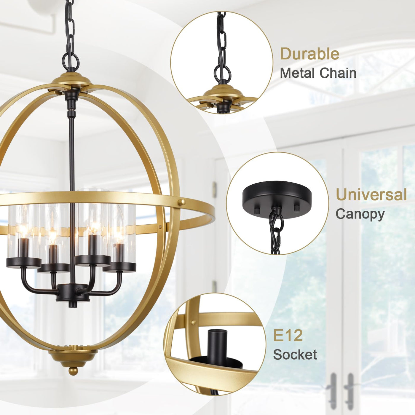 Treekee 4-Light Globe Chandelier, Adjustable Modern Pendant Light, Black & Gold Iron Finish