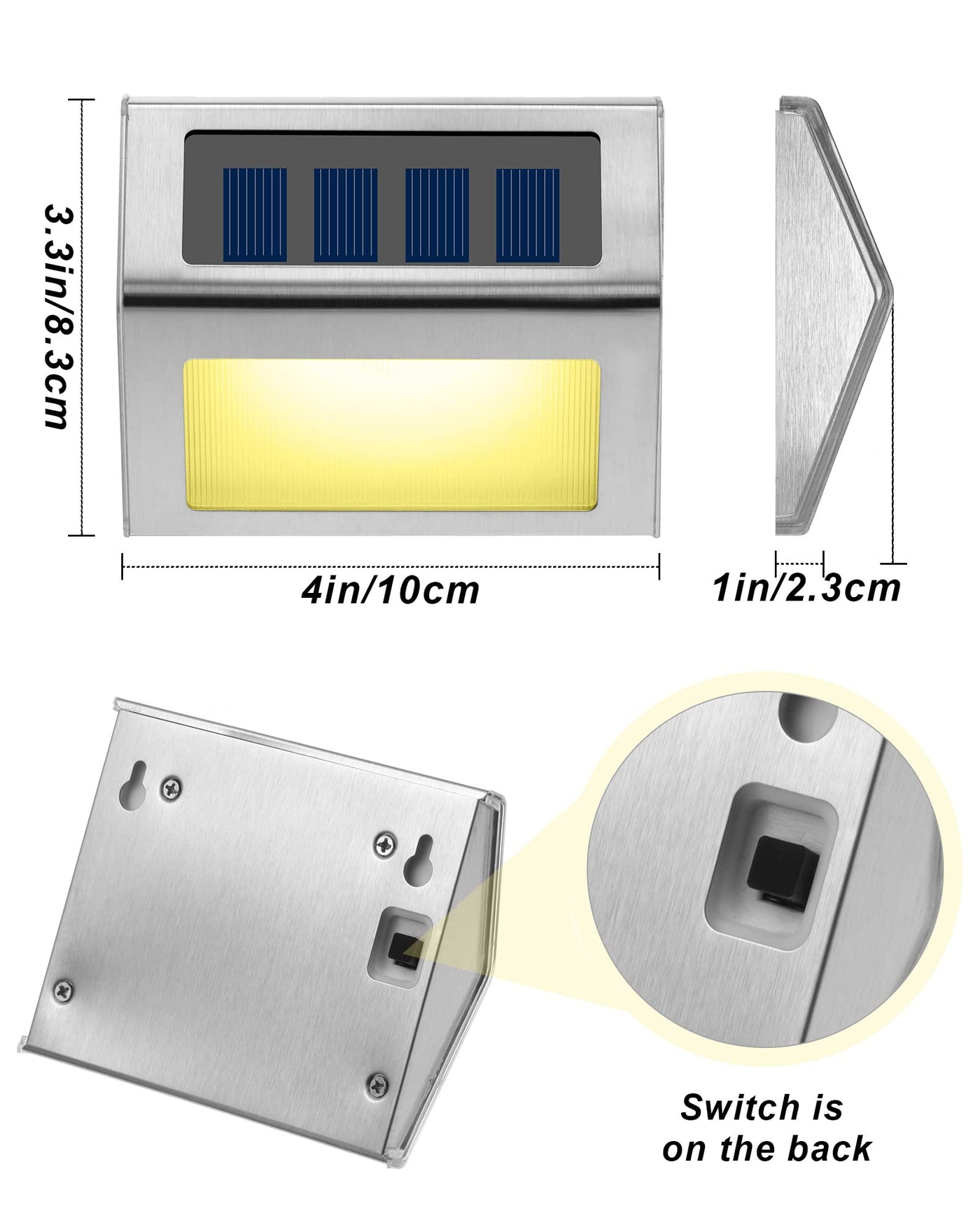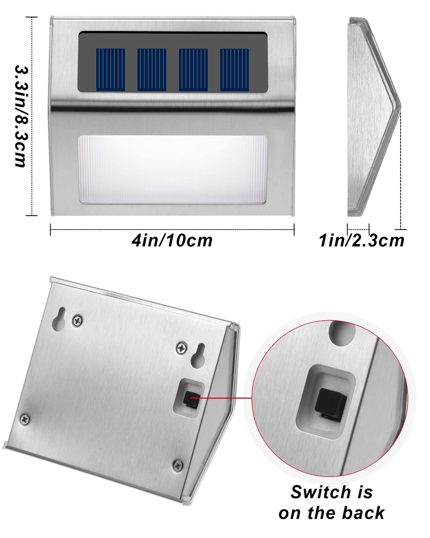 Special design: Outdoor fence lights, solar powered, no battery needed or no electricity bill, very energy saving. There is a switch button on the back of the light, please turn it on before installation, so that the outdoor light can automatically turn on when it is dark