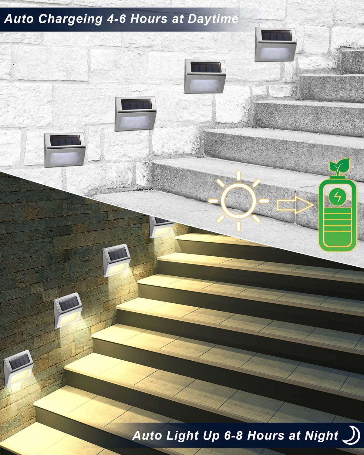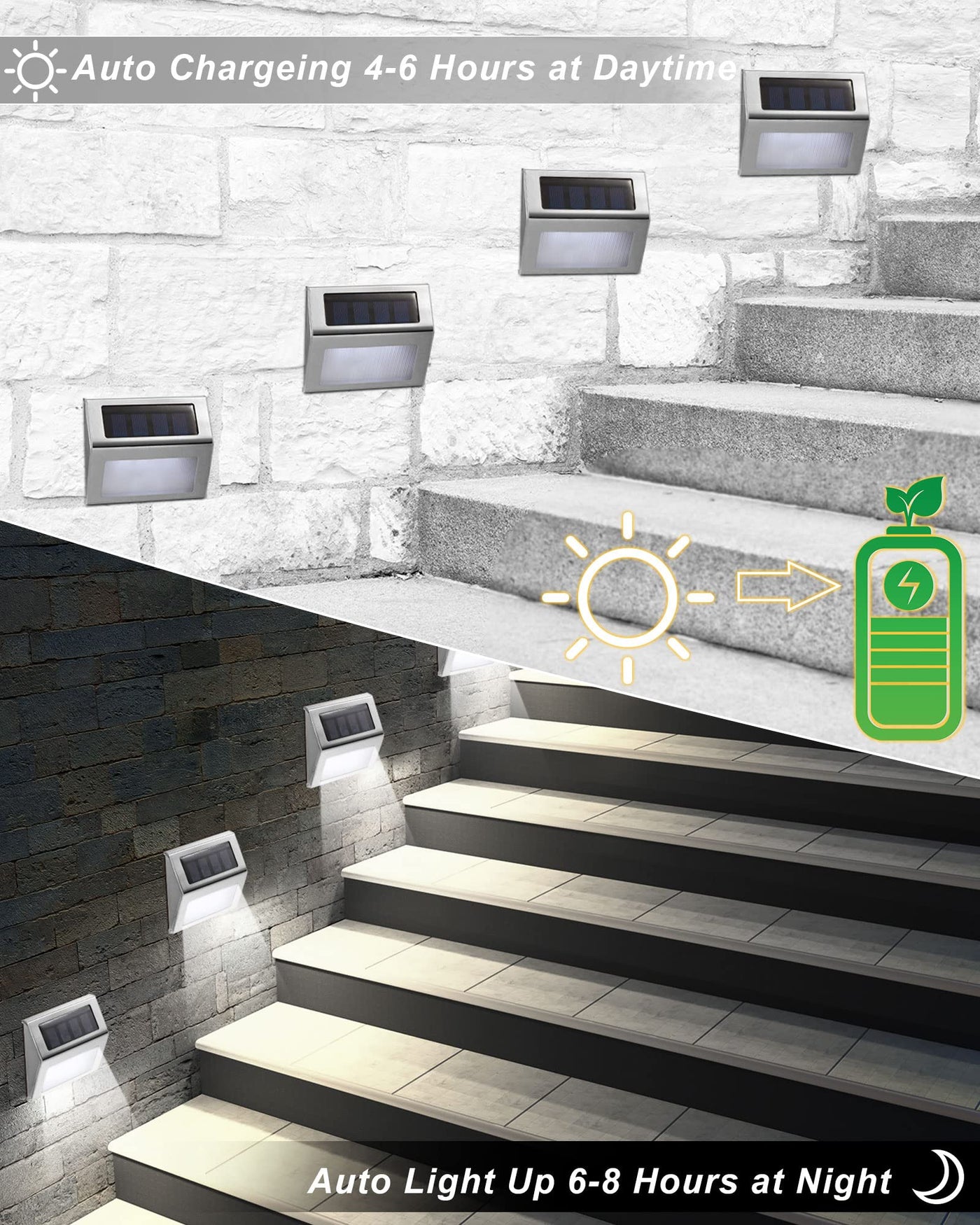 Q: How long do the Treela solar fence lights last on a full charge?A: The Treela solar fence lights can provide illumination for approximately 8-10 hours when fully charged, thanks to the built-in 600 mAh NI-MH rechargeable battery.