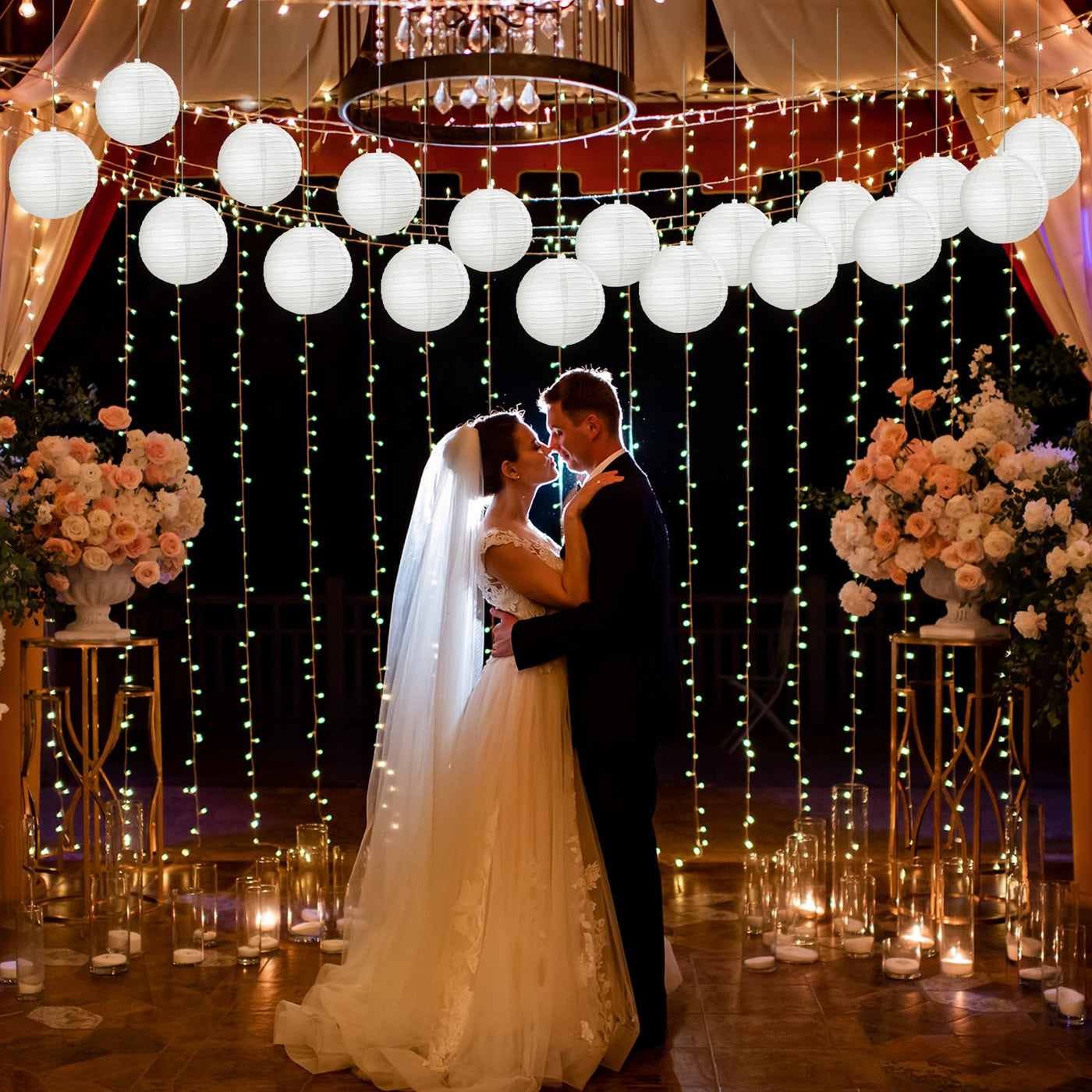 Q: Are there any specific care instructions for the paper lanterns?A: To maintain the quality of the paper lanterns, avoid exposure to moisture and direct sunlight for extended periods. After use, gently fold them and store them in a dry place to ensure they remain in good condition for your next event.