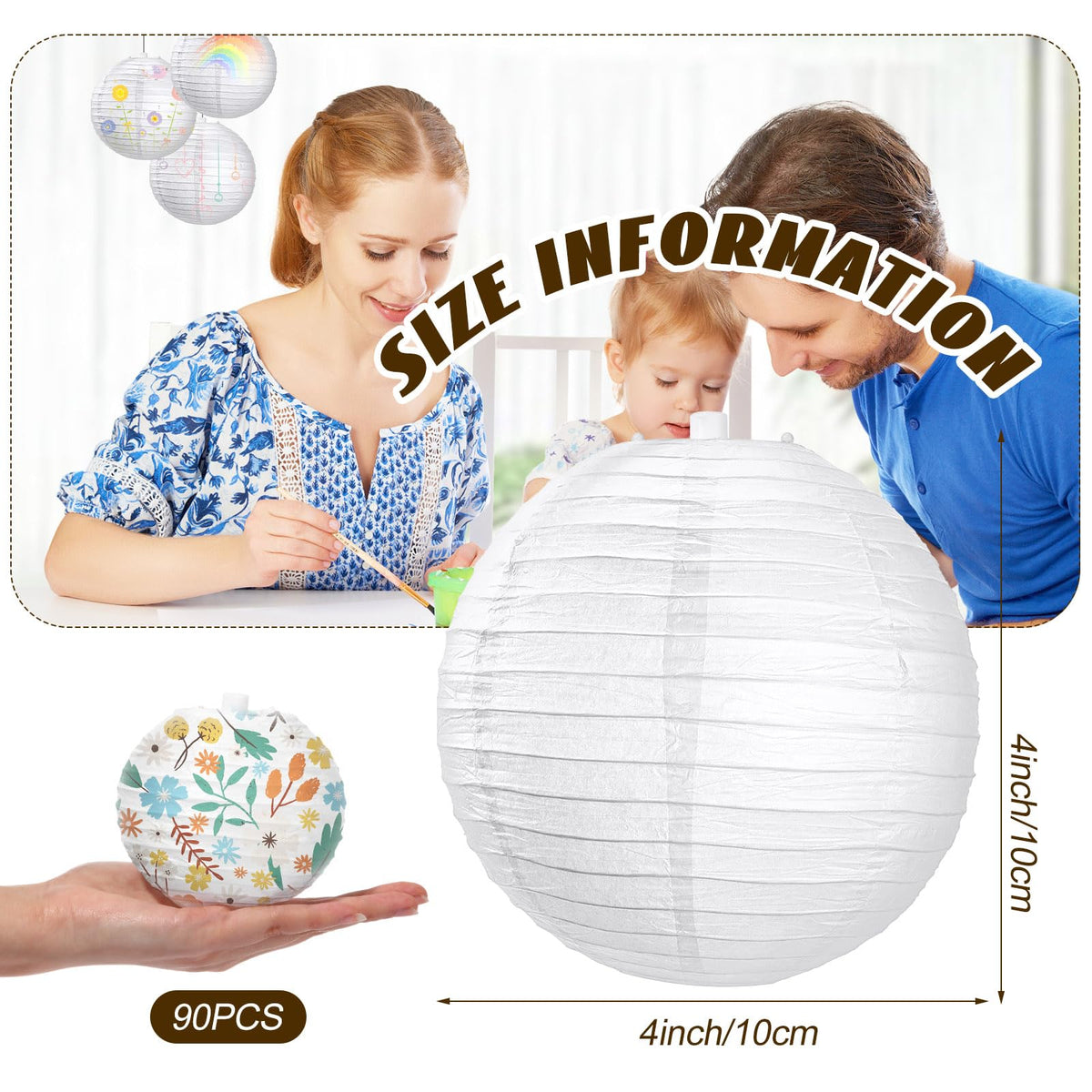 Q: What is the size of these lanterns?A: Each paper lantern measures 4 inches (10 cm) in diameter, making them an ideal size for creating an engaging atmosphere without overwhelming your decor.
