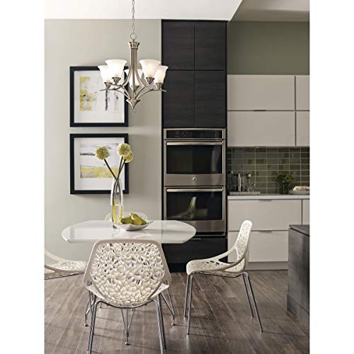 Product Descriptionfive-Light Chandelier Featuring Soft Angles, Curving Lines And Etched Glass Shades. Gracefully Exotic, The Trinity Collection Offers Classic Sophistication For Transitional Interiors. Sculptural Forms Of Metal And Glass Are Enhanced By A Classic Finish. This Transitional Style Can Transform A Room Or Your Whole Home With Its Charming Versatility. Antique Bronze Finish.From The Manufacturergracefully Exotic, The Trinity Collection Offers Classic Sophistication For Transitional Interiors. Sweeping, Minimalist Forms Are Enhanced By A Warm Antiqued Metal Finish. 5-Light Chandelier With Etched Glass. Uses (5) 100-Watt Medium Base Bulbs 23-Inch Diameter By 24-Inch Height