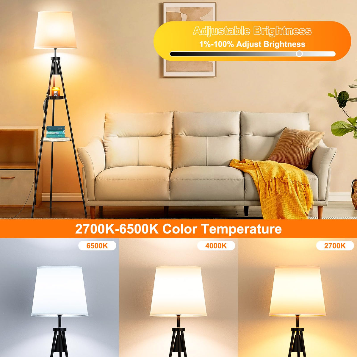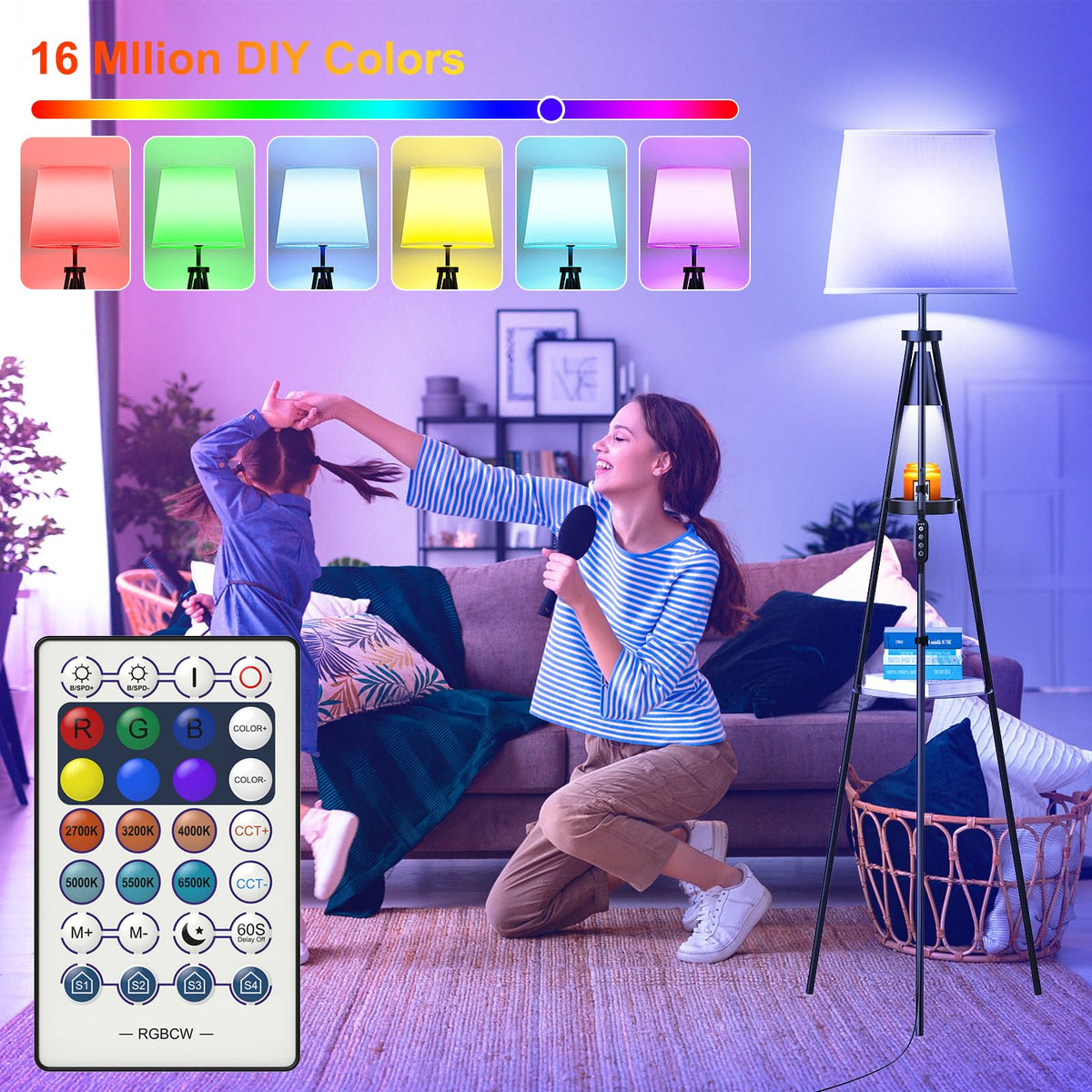 Q: What are the smart features of the Tripod Floor Lamp?A: The Tripod Floor Lamp comes with smart RGB lighting that allows you to choose from various colors and tunable white light settings (2700-6500K). It can be controlled via Alexa or Google Assistant for hands-free operation, as well as through a remote or smartphone app, making it versatile and user-friendly.