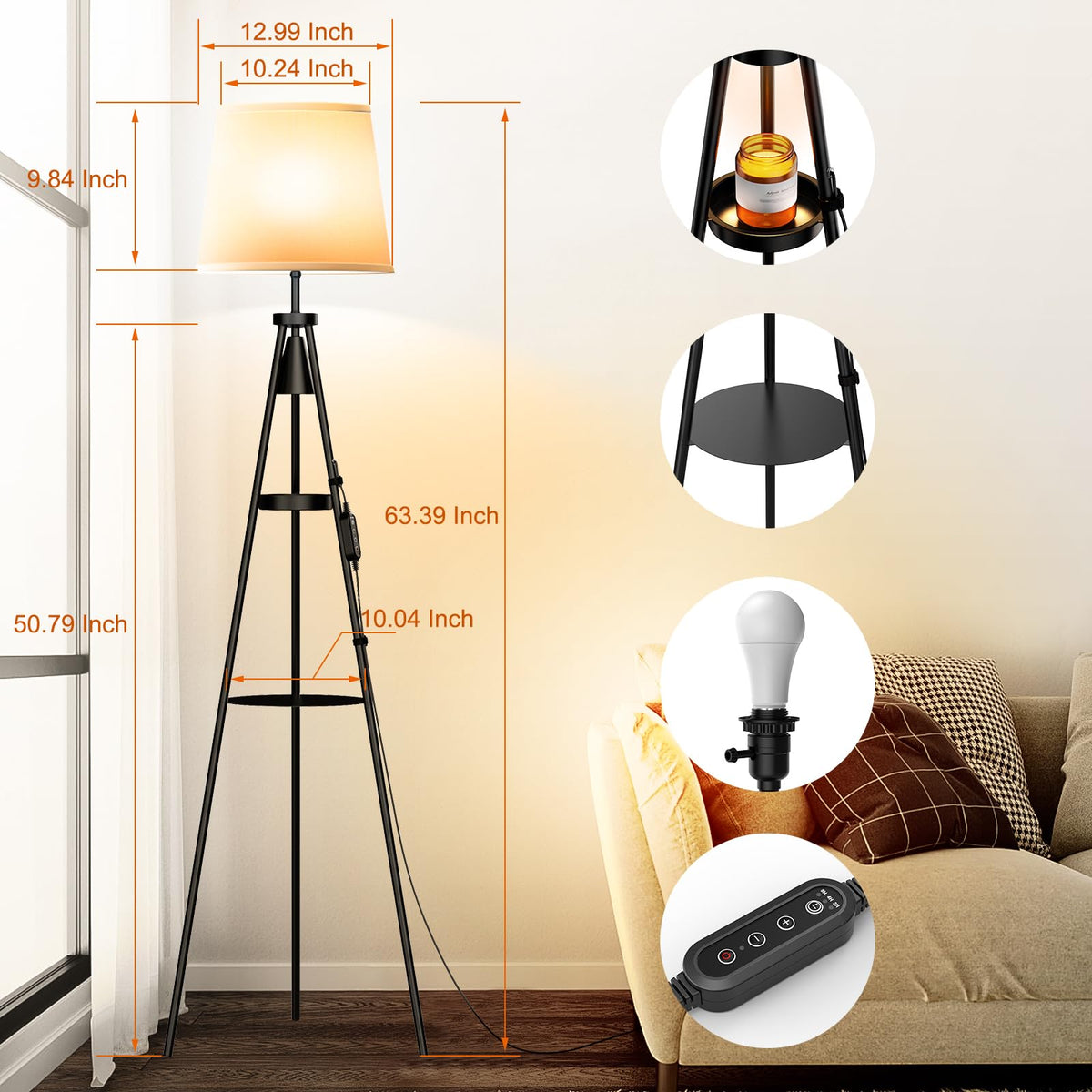Q: What can I display on the built-in shelf of the lamp?A: The built-in shelf of the Tripod Floor Lamp is perfect for showcasing small items such as plants, photo frames, books, or decorative objects, adding both functionality and style to your living space.