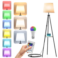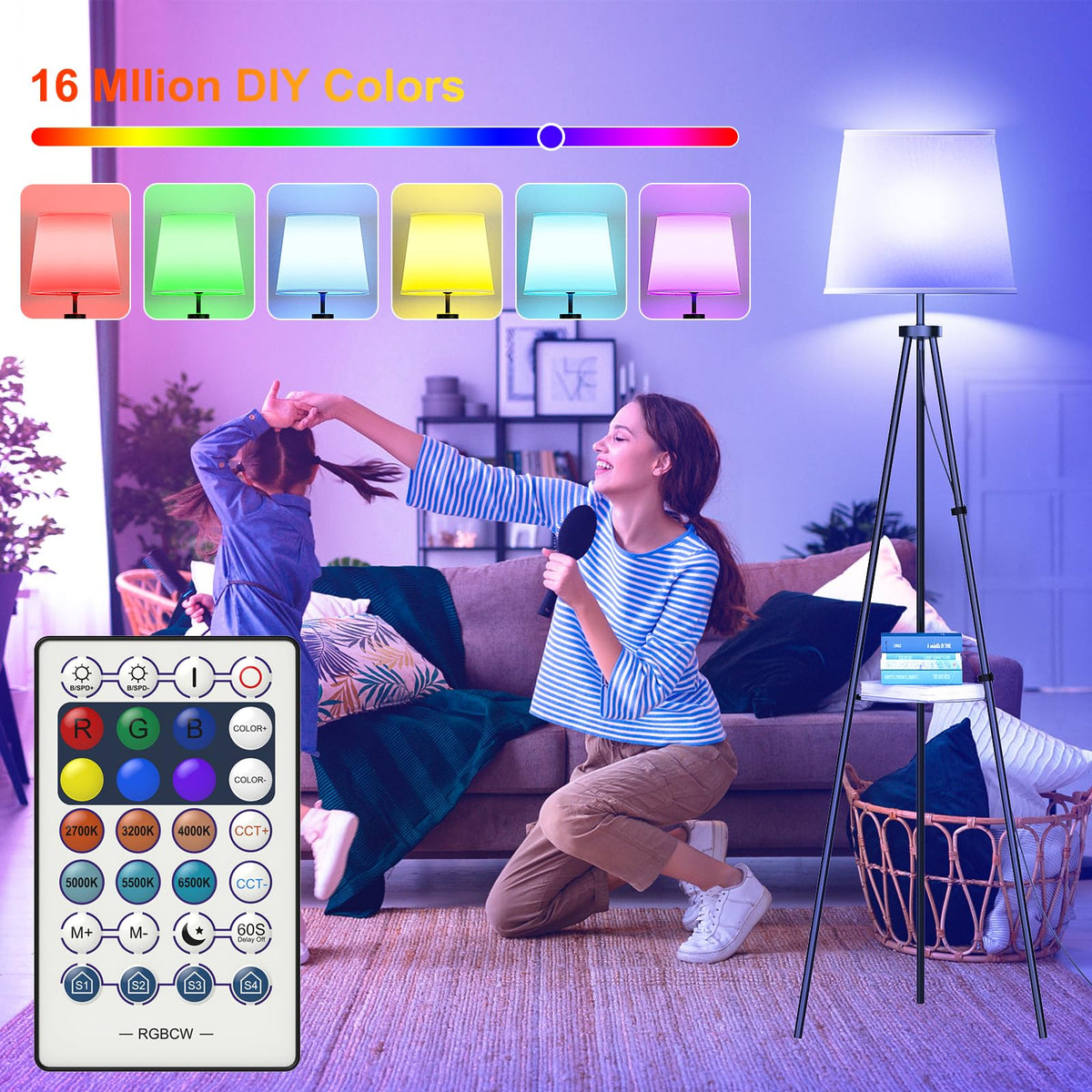 Q: Can I customize the lighting colors on this floor lamp?A: Yes, the smart RGB light feature allows you to choose from a variety of RGB colors and tunable white light ranging from 2700K to 6500K. You can set the mood for any occasion with default and custom scenes.