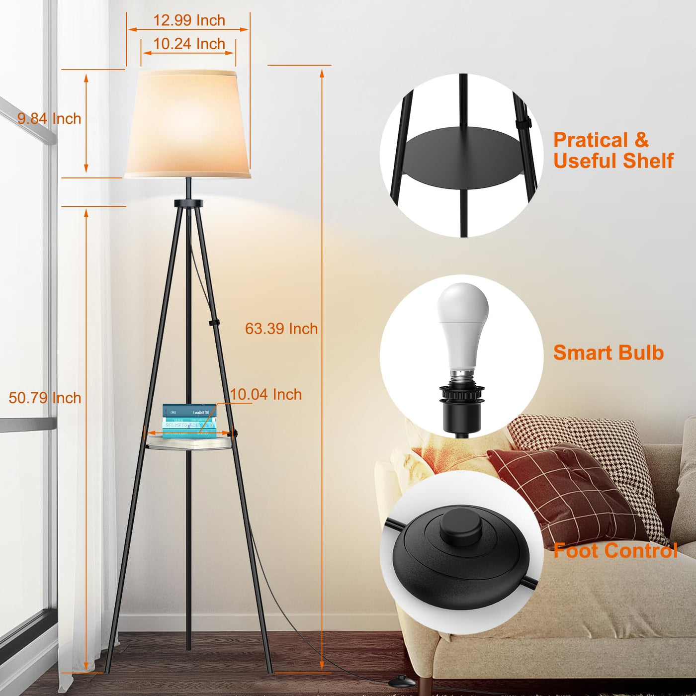 Q: What items can I display on the built-in shelf of the lamp?A: The built-in shelf is perfect for showcasing small items such as plants, photo frames, or books, making it both a functional and decorative piece for your living space.