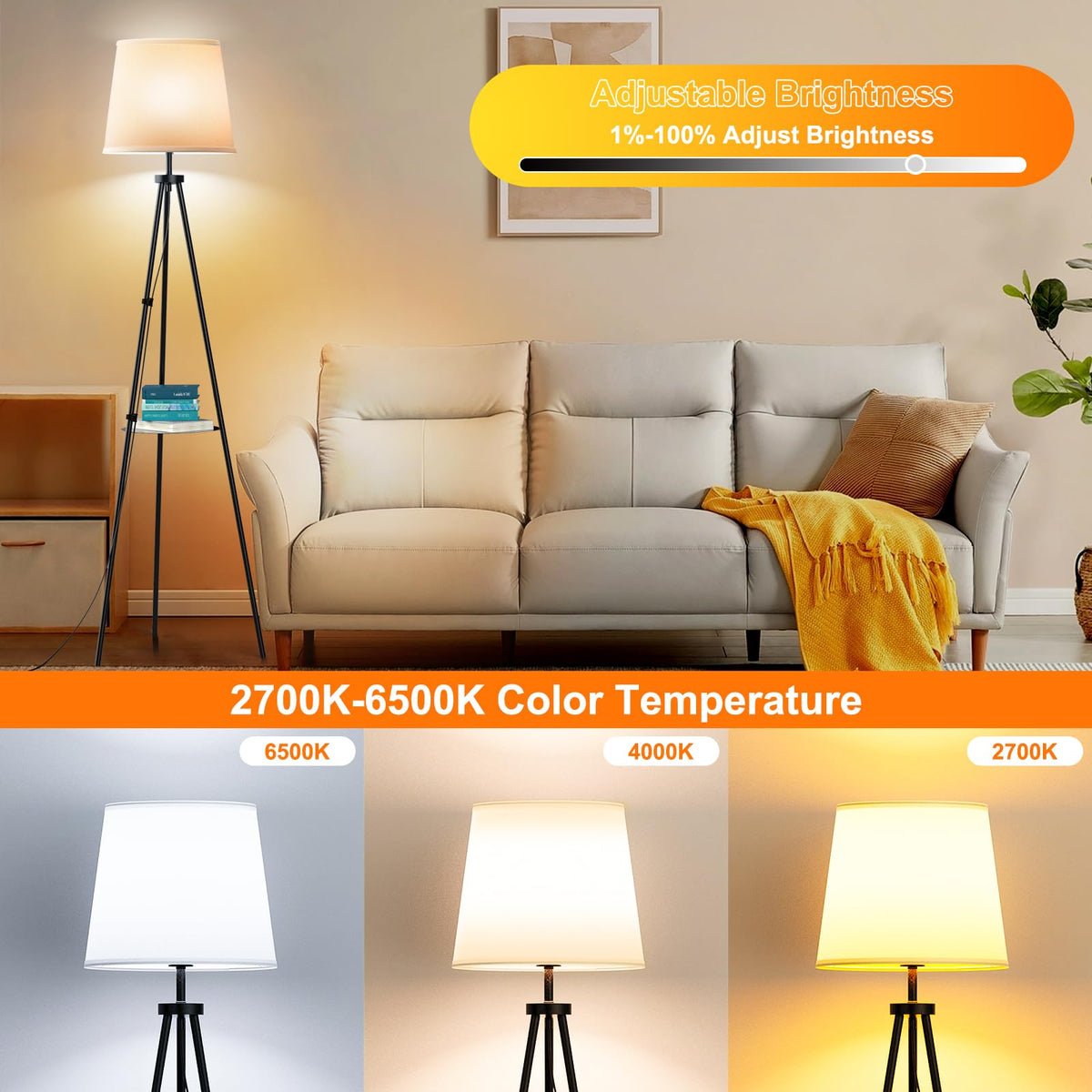 Tripod Floor Lamp, Moden Stand Up Lamp, Dimmable Standing Tall Lamp For Living Room Bedroom, Wifi Smart Rgb Light Compatible Wit