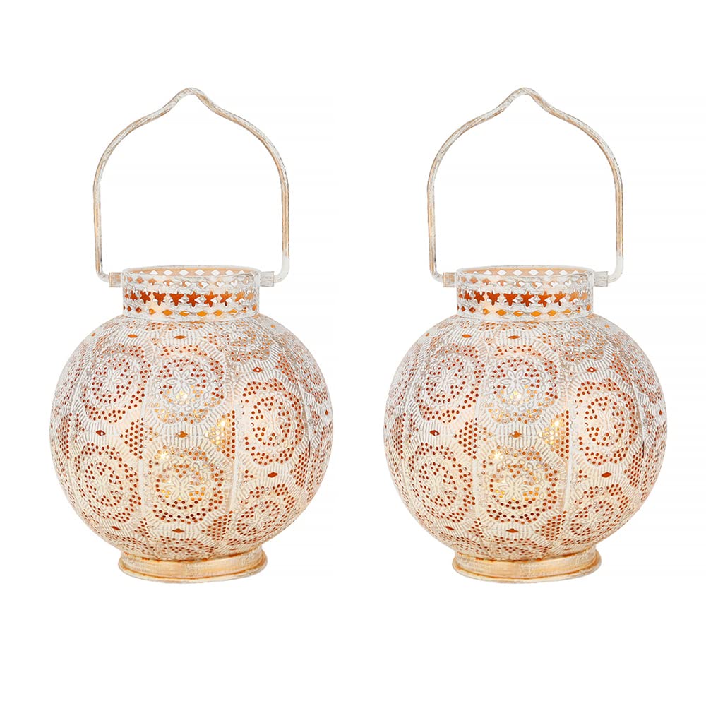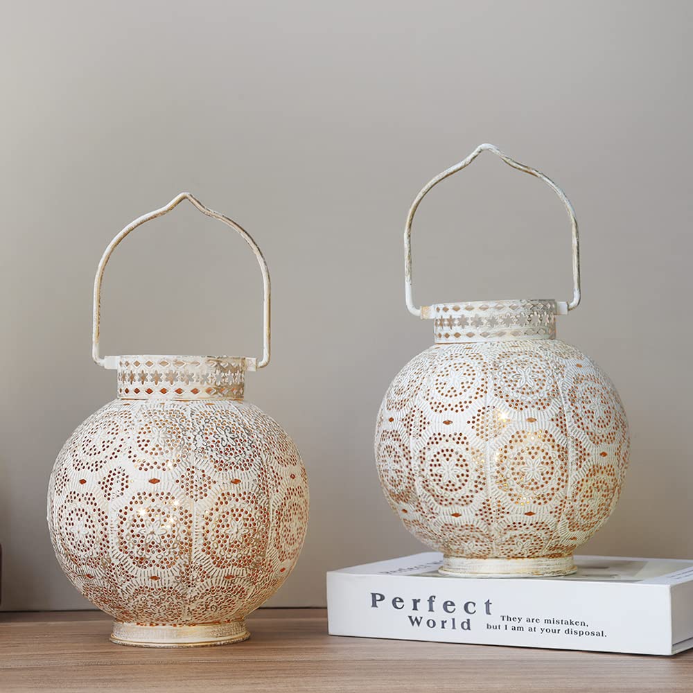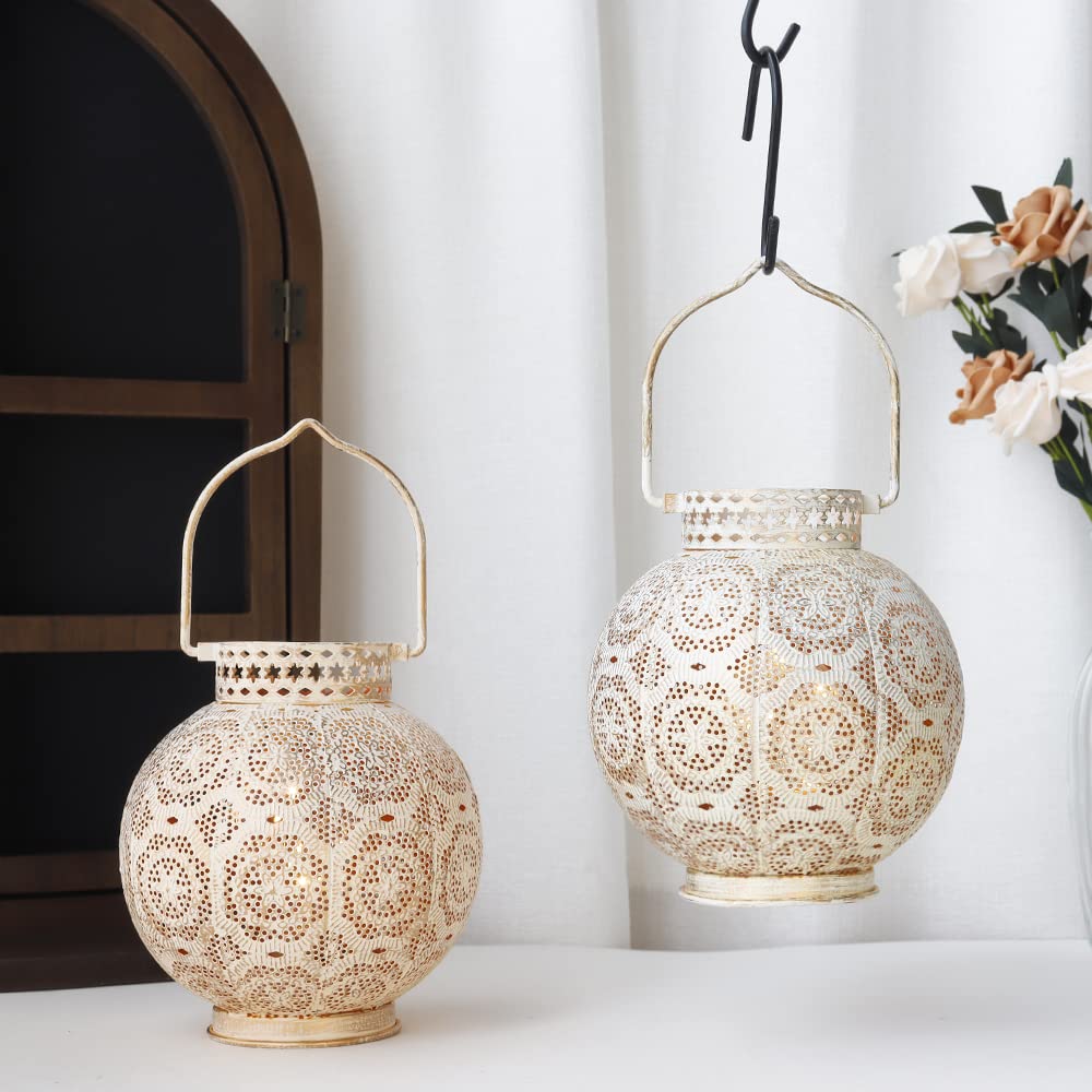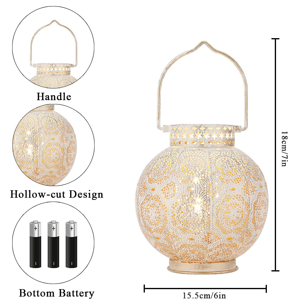 - **Moroccan Design**: Crafted with a unique white metal hollow-out design, this lamp features built-in fairy string light bulbs, casting captivating patterns on your walls and tables. Its gorgeous appearance and attractive openwork flower patterns make it an ideal addition to modern and unique garden decorations, adding warmth and comfort to your yard and home.