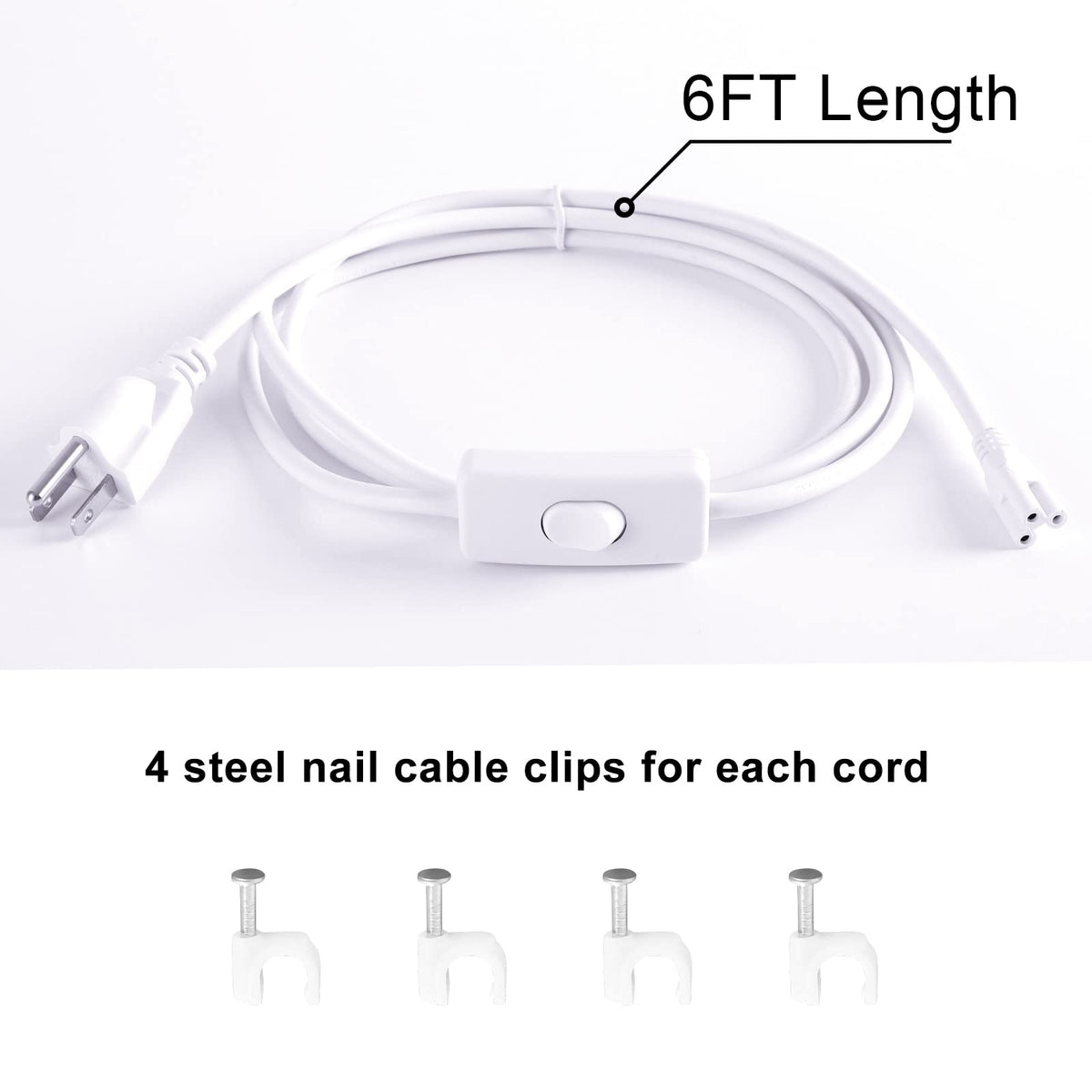 TRLIFE is an advanced LED lighting company, we integrate factory, product development, and trade to provide customers with higher quality LED lighting products. Specifications: Item: UL Certified t5 t8 power cord with on/off switch Material: High quality copper wire and rubber Cord Length: 6ft Working Voltage: 85-265V Max Wattage: 360W Fit for T5/T8 LED integrated light fixtures Item Quantity: 2 Pack Package List: 2* power cords 8* steel nail cable clips
