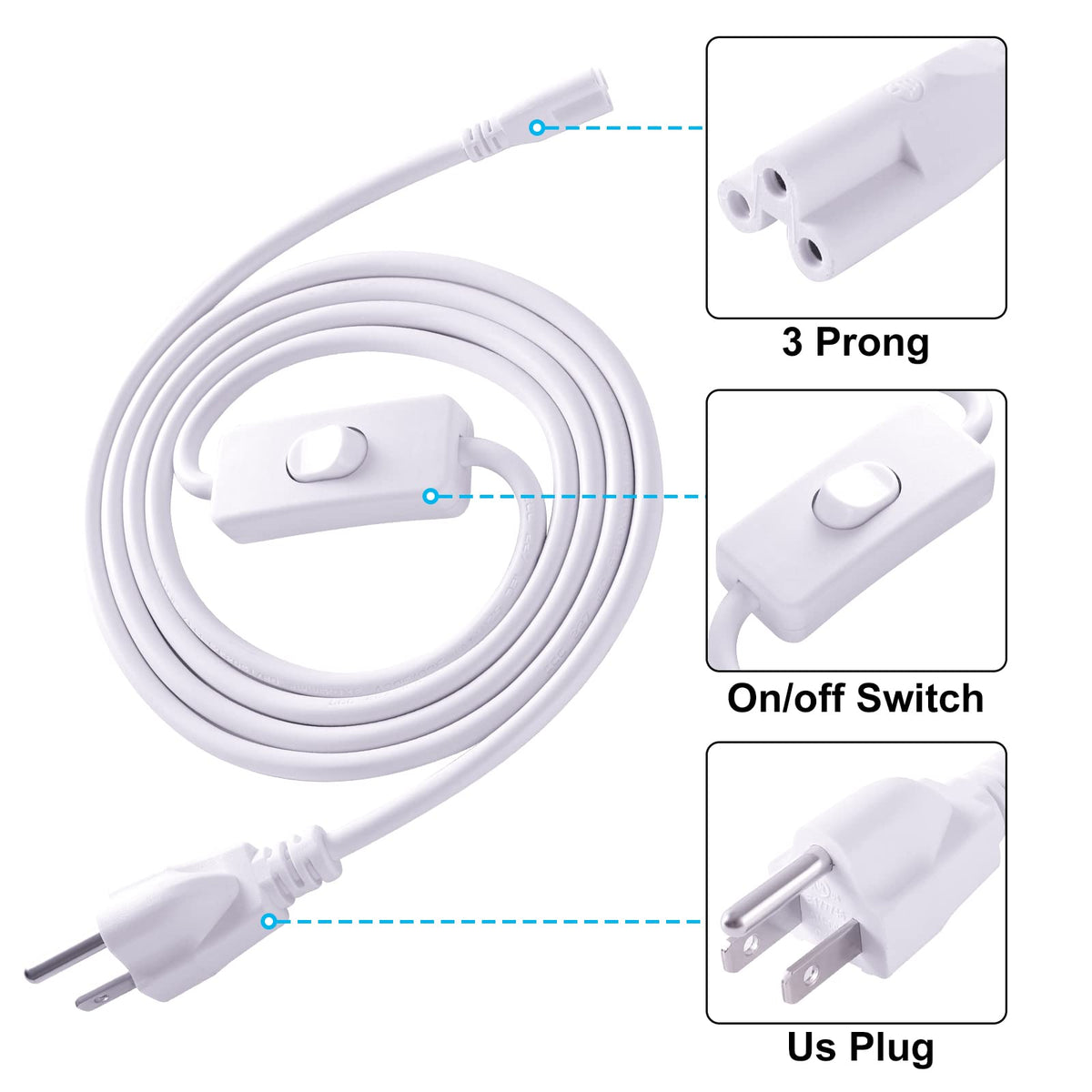 Trlife 6Ft Led Light Power Cord With On/Off Switch, T5 T8 Power Cord T5 Connector Cord Extension Cord With Us Plug For Led T5 T8
