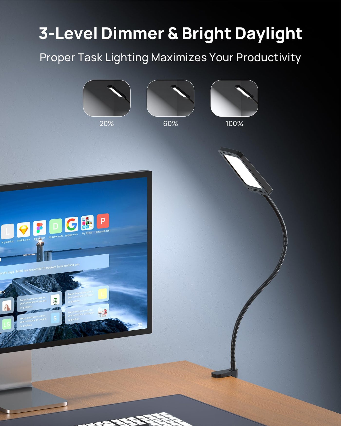 Trond Led Desk Lamp With Clamp, 1000Lm Super Bright 3-Level Dimmable Desk Light 6000K Daylight, Extra-Long Flexible Gooseneck Cl