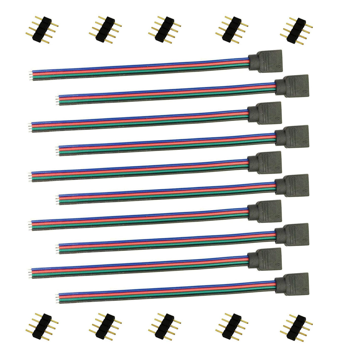 Package Content: 10pcs RGB LED Strip Female Connector Cables 10pcs RGB male to male 4-pin plugs