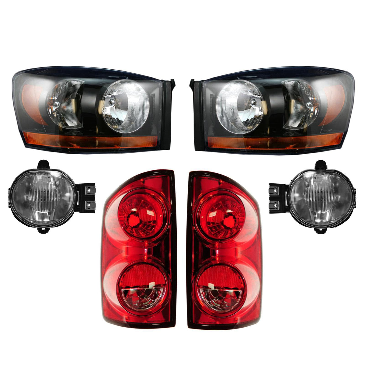 6 Piece Lighting Kitkit Includes(1) Fog Light Set(1) Headlight Set(1) Tail Light Setfitmentcompatible With: 2007-08 Dodge Ram 1500 Truck With Black Bezel With Amber Barcompatible With: 2007-08 Dodge Ram 2500 Truck With Black Bezel With Amber Barcompatible With: 2007-08 Dodge Ram 3500 Truck With Black Bezel With Amber Barproduct Attributesquantity: 6 Piecereference Numbers11-6241-0011-6242-00114-01033Br114-01034Bl116-03217R116-03218L166-00492R166-00493L19-5539-0019-5540-0055077474A55077474Ae55077475Ac55077475Ae55277302Ab55277302Ac55277303Ab55277303Ac55372814Ab55372815Abch2518115Ch2519115Ch2592121Ch2593121Ch2800165Ch2801165Lht00255Lht00256Lht01838Lht01839Lht06307Lht06308