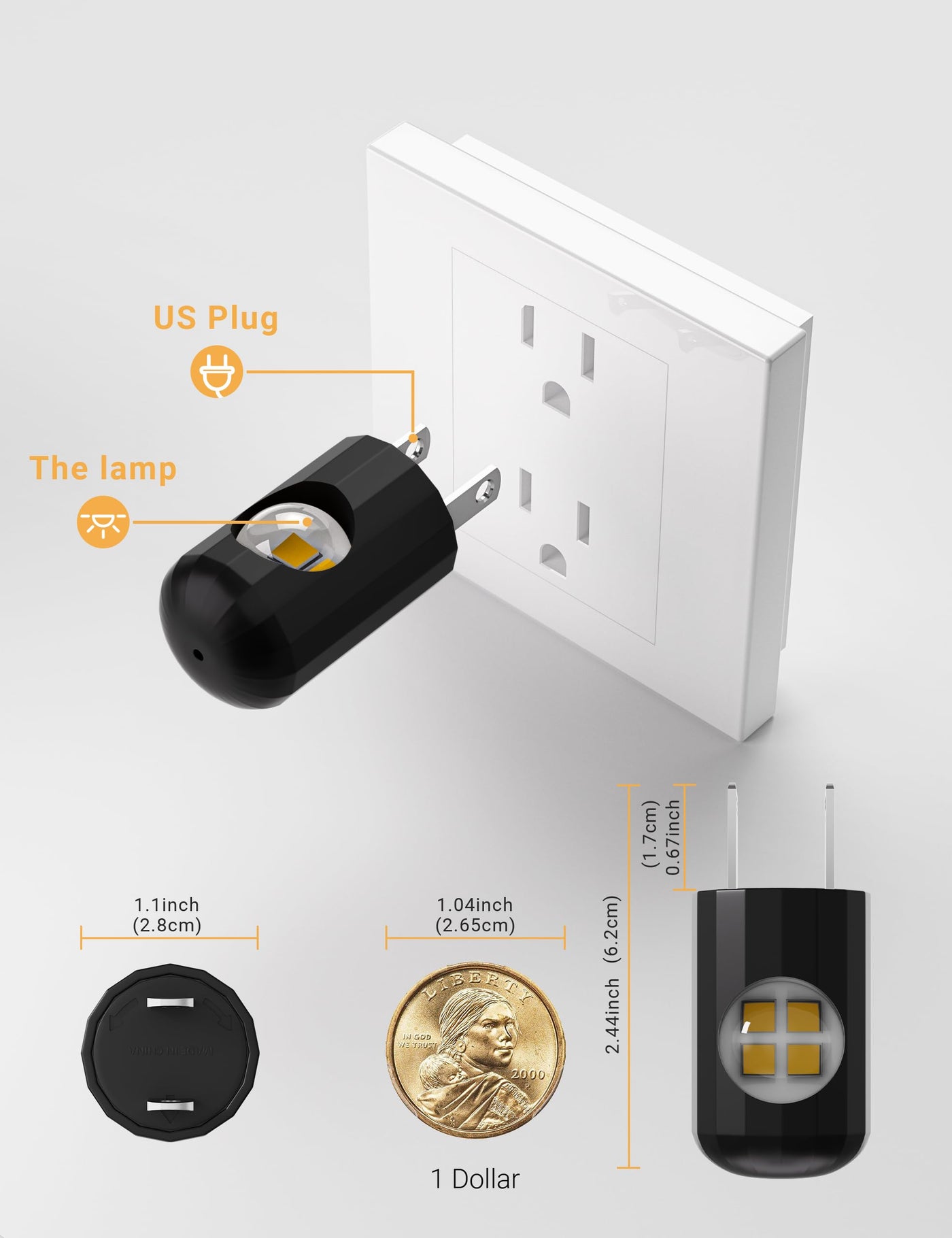 VERSATILE DESIGN: With a compact and sleek appearance, these plug-in lights fit seamlessly in various indoor spaces, including hallways, kitchens, bathrooms, bedrooms, children's rooms, and living rooms.