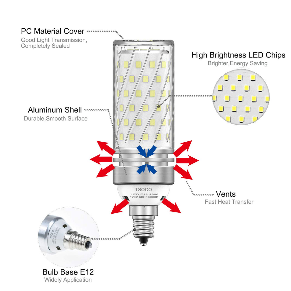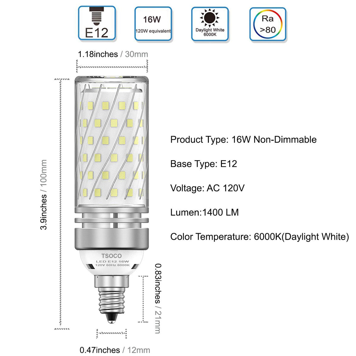 Q: How energy efficient are the TSOCO E12 LED bulbs compared to incandescent bulbs?A: These LED bulbs are highly energy-efficient, using only 16 watts of power while providing the same brightness as a traditional 120-watt incandescent bulb, allowing you to save up to 90% on energy costs.