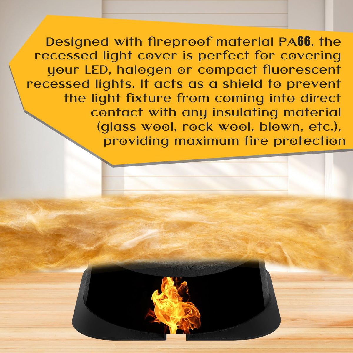 Tuanse 10 Pcs Recessed Light Cover For 6 Inch Lighting Fixtures 8.6 X 8.6 X 2.9 Inch Fire-Resistant And Energy-Saving Light Insulation Protect Cover For Attic (Black)