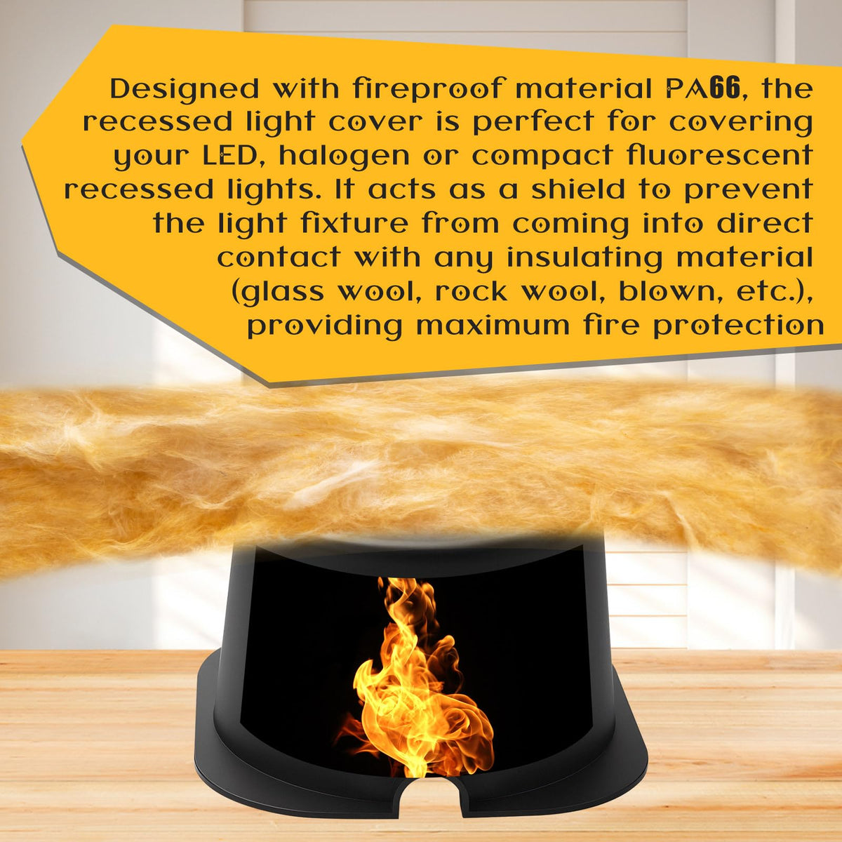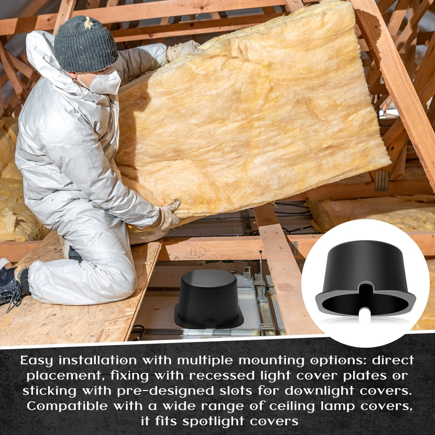 Tuanse 15 Pcs Recessed Light Cover For 4 Inch Lighting Fixtures 5.3 X 5.3 X 3.35 Inch Fire-Resistant And Energy-Saving Light Insulation Protect Cover For Attic (Black)