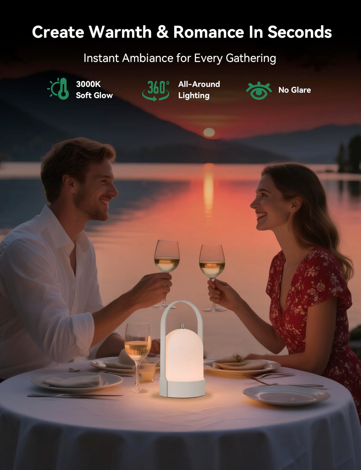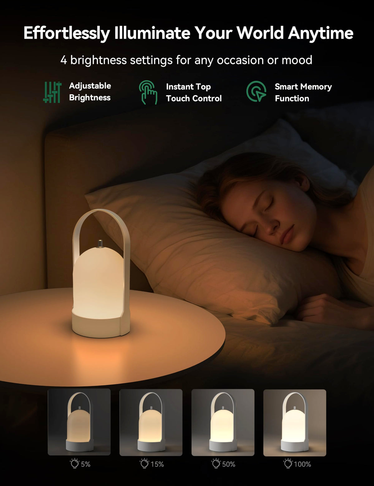 Tubicen Portable LED Lantern Table Lamp with Handle, Battery Operated Rechargeable Cordless Lamp for Table, 4-Level Touch Dimmab