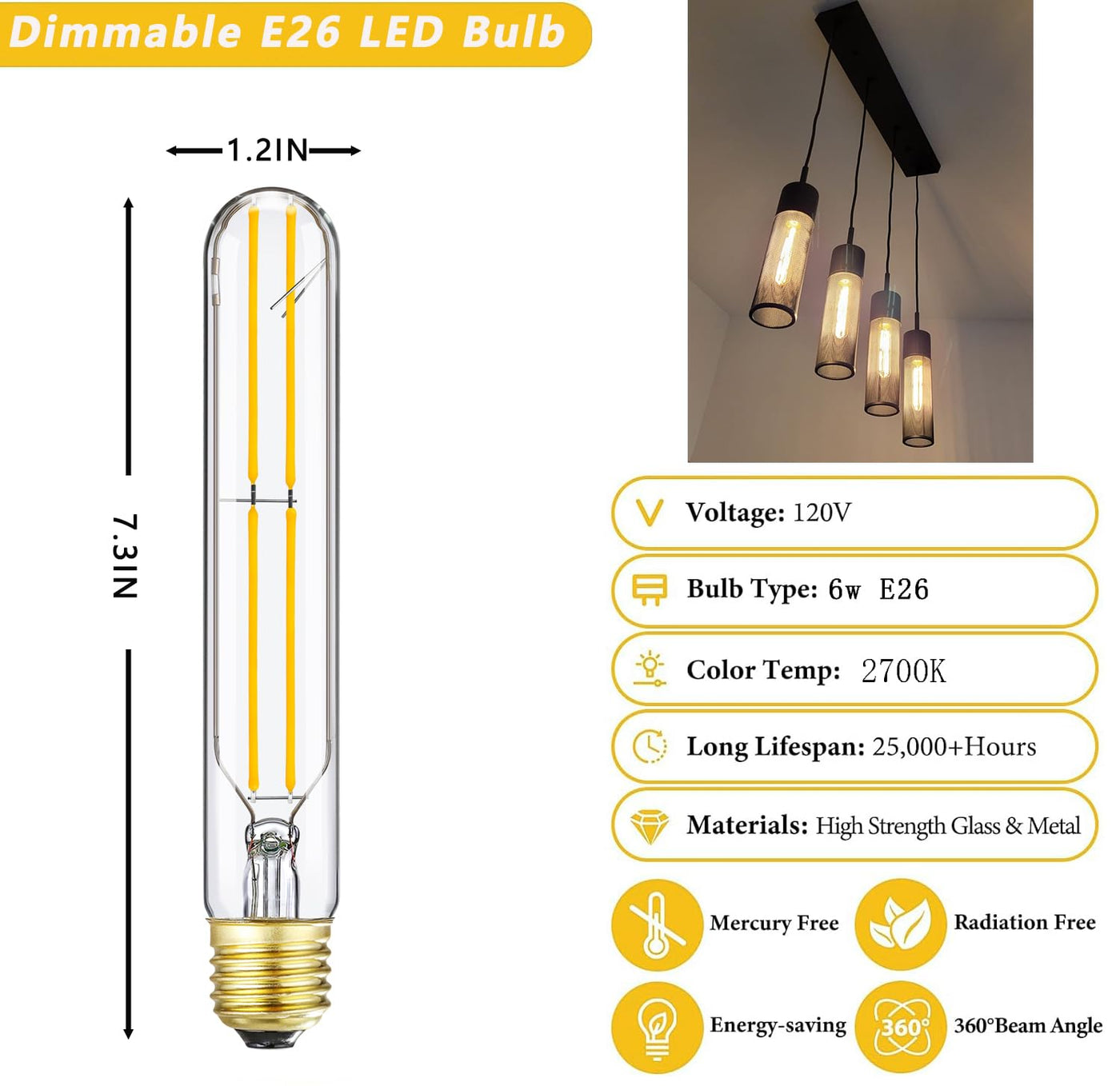 - Long Lifespan: The E26 T10 LED Edison bulb boasts a lifespan of up to 25,000 hours, minimizing the need for frequent replacements and saving you time and effort.