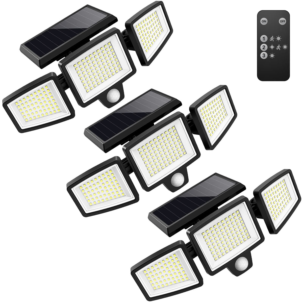 Tuffenough Solar Outdoor Lights 2500Lm 210 Led Security Lights With Remote Control,3 Heads Motion Sensor Lights, Ip65 Waterproof